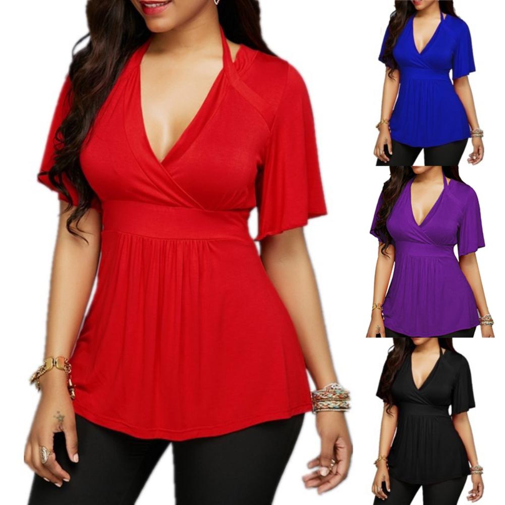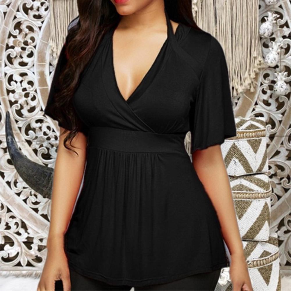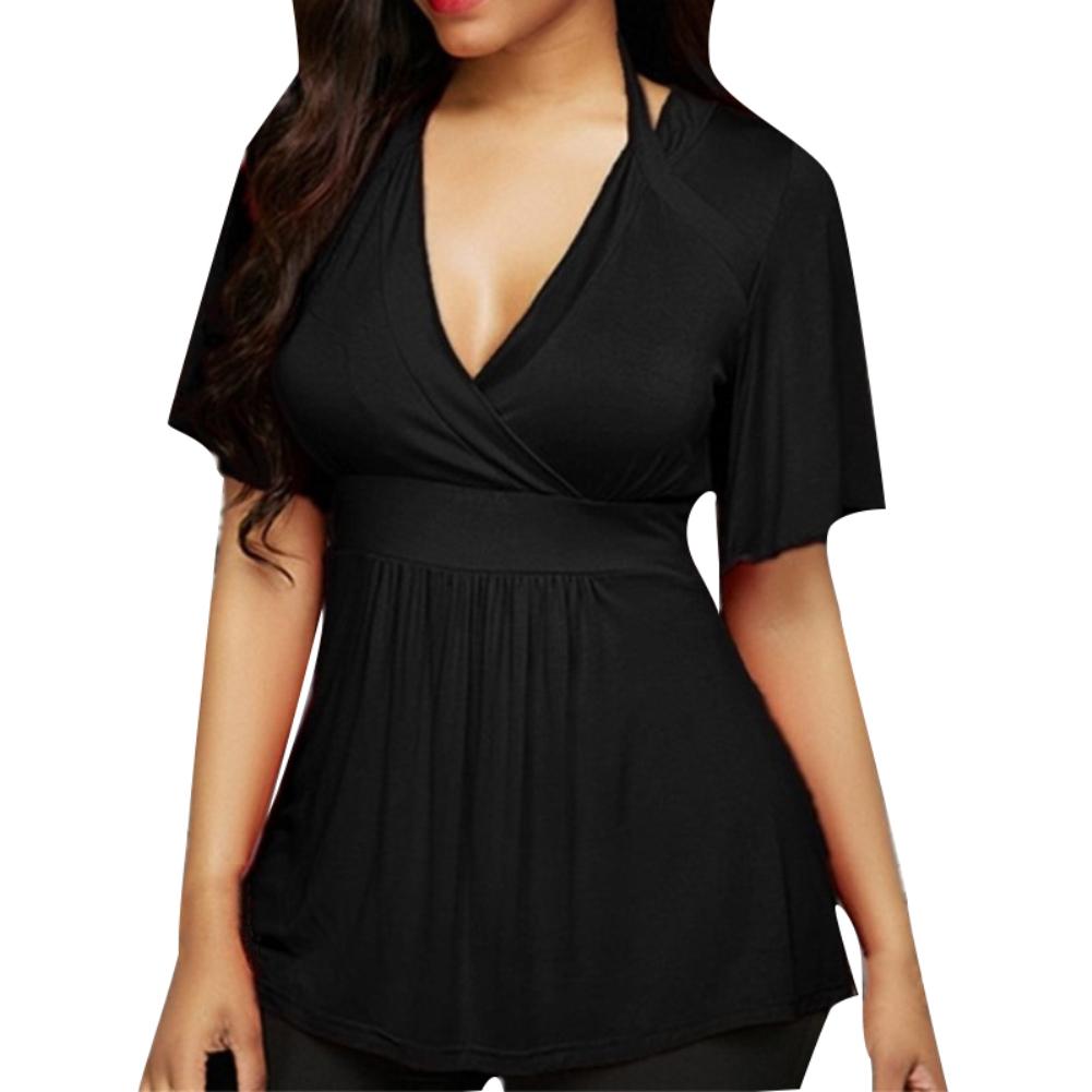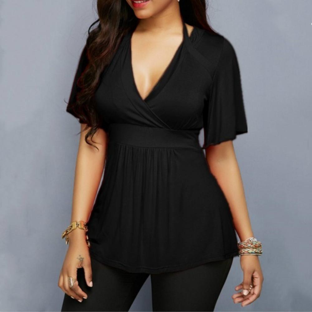 Кружевная футболка весна лето Женская мода Большой размер Кружевная футболка с коротким рукавом с v-образным вырезом Топы Одежда