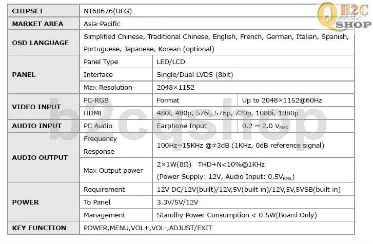 M.NT68676.2AПоддерживает управление динамической контрастностью, вход для наушников и цифровой регулятор громкости одновременно.