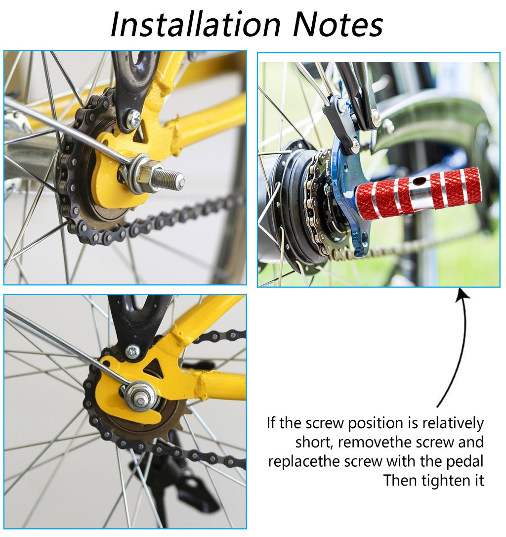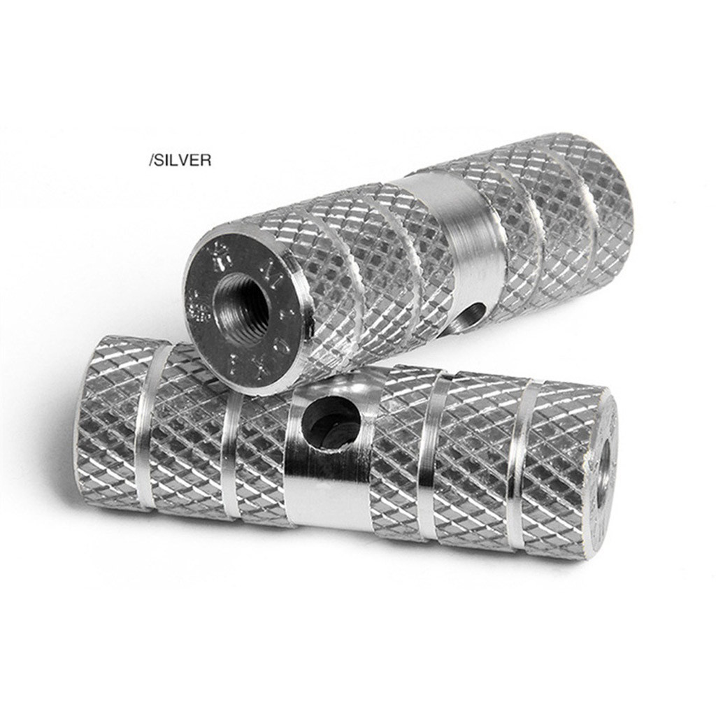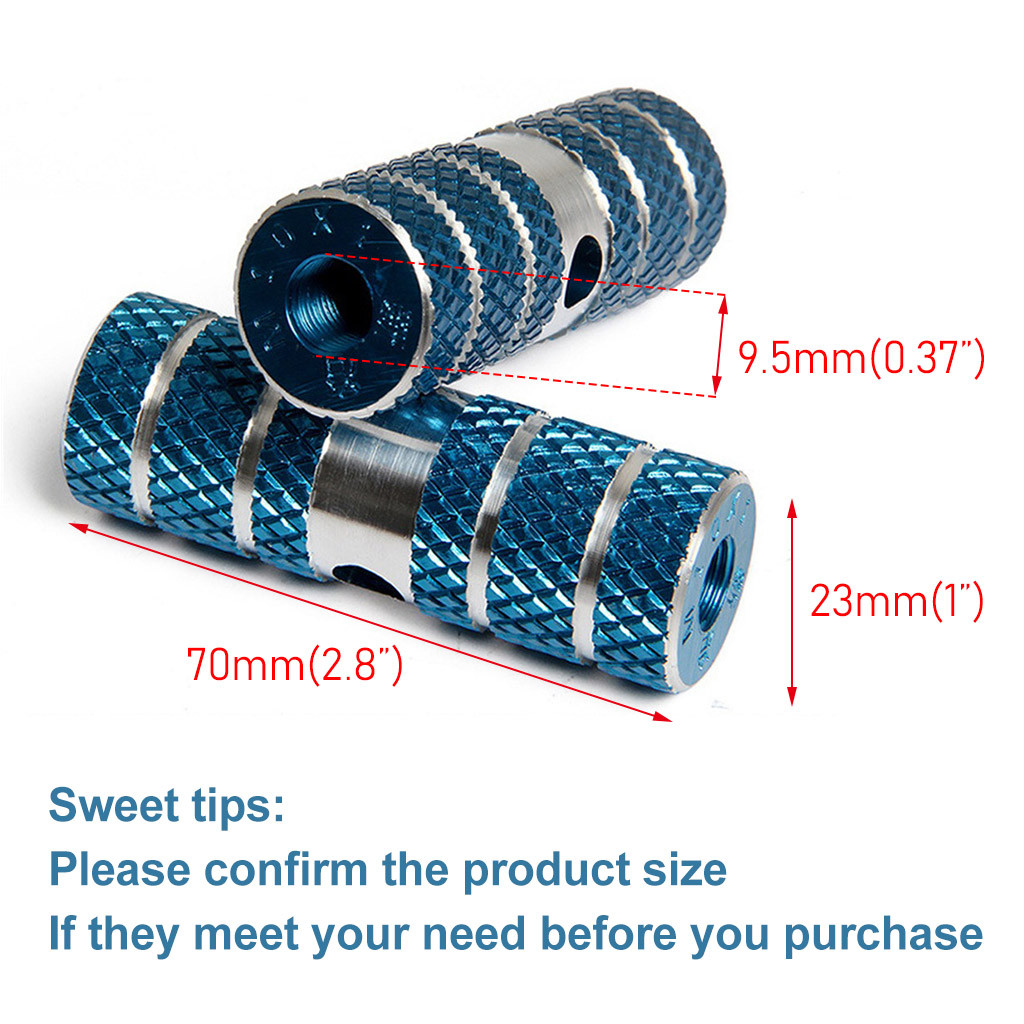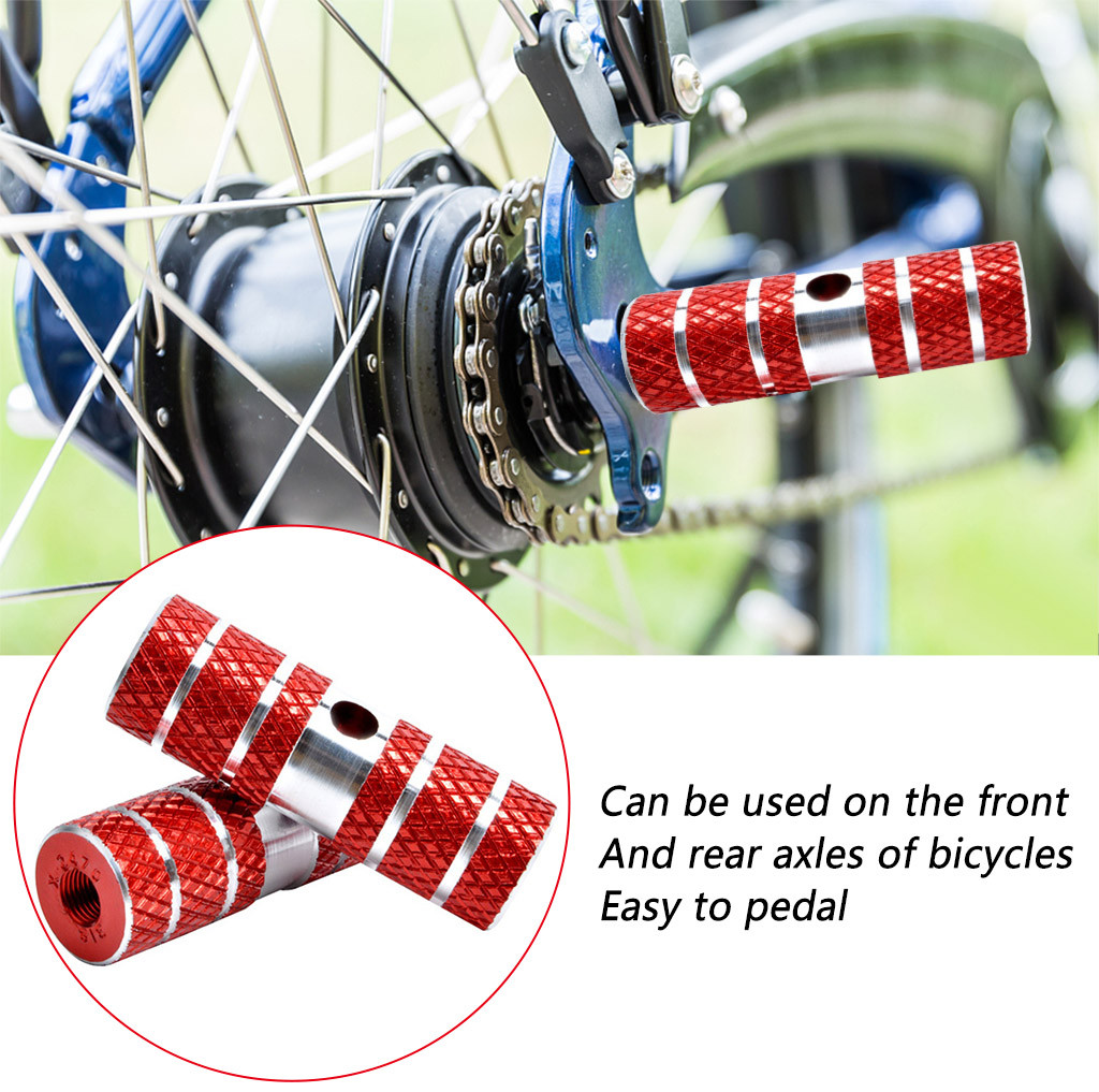 Изготовлен из высококачественного Алюминиевый сплав, легкий, высокопрочный и износостойкий. Устанавливается на ось Переднее или заднее колесо велосипеда, которое может сделать ваши ноги более Удобный и расслабляющий. Саржа В Форме Бриллианта Противоскользящая конструкция, Увеличивает трение для обеспечения безопасности. Размер: около 70 мм X 23 мм/2,8 "x 1". Резьбовое отверстие одна сторона 9,5 мм/0,37 ", другая сторона- 10 мм/0,39 ". Подходит для Типы велосипедов с 9 мм осями, исключают быструю разборку типа оси ступицы.Информация о продукте: