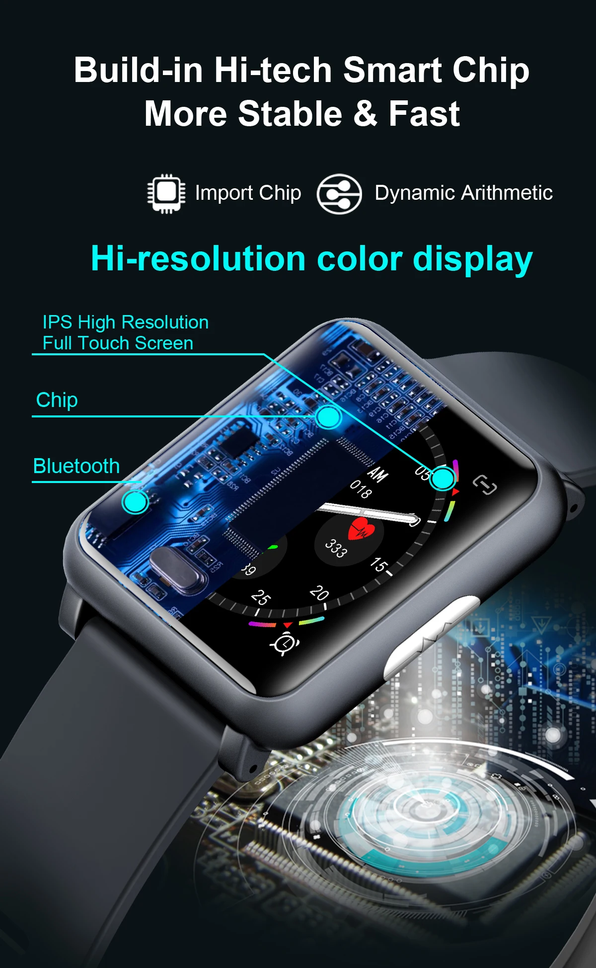 Особенности: Экран: 1,3 'дюймовый IPS Экран Чип: NRF52832 RAM: 64M Чип ECG: Texas Instruments TI Чип PPG: ч 3300 Аккумулятор: 200 мАч Двигатель: встроенный, вибрационное напоминание Уровень водонепроницаемости: IP67 Датчик: g-сенсор Основные функции: ECG + PPG a измерение здоровья, обмен ЭКГ, индекс здоровья HRV, тест кровяного давления, данные измерений, взаимное исследование Другие функции: будильник/лекарство/встреча/сидячие/напоминание о напитках/камера дистанционного управления/напоминания о звонках/SMS напоминание/мониторинг сна Системные требования: Android 4,4 версия IOS 8,0 версия или выше; Поддержка Bluetooth с версии 4,0; Язык: упрощенный китайский, традиционный китайский, английский, французский, немецкий, итальянский, японский, корейский, Малайзийский, португальский, русский, испанский. Посылка: 1 умные часы 1X зарядный кабель 1X руководство на английском языке 1х коробка для посылка