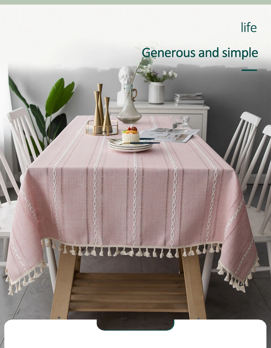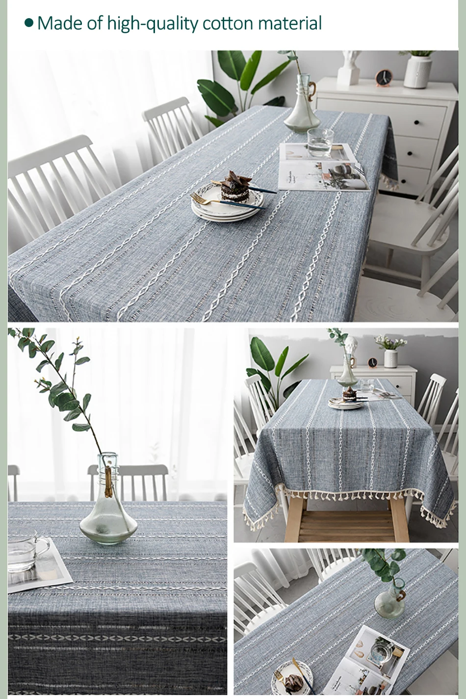Скатерть кружевная хлопковая льняная в полоску Пыленепроницаемая художественная скатерть для гостиничного дома журнальный столик для гостиной прямоугольный из ткани