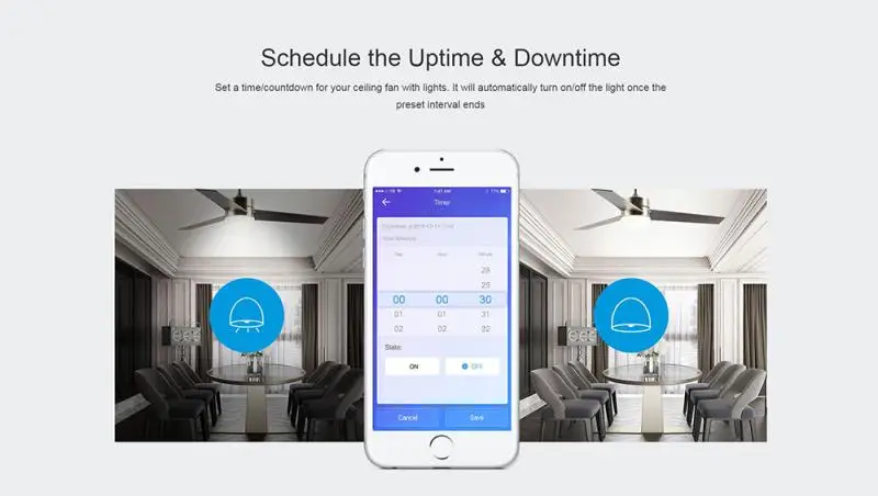 IFan03, новинка версия iFan02, более стабильная производительность, которая является беспроводного доступа в Интернет Wi-Fi потолочный вентилятор и светильник контроллер поддерживает для того чтобы контролировать потолочный вентилятор с светильник с помощью вашего телефона, где бы вы ни находились.Голосовое управление предназначено для того, чтобы вы могли легко управлять iFn03, чтобы включить или выключить вентилятор и светильник, не требуется ЛюбаЯ ручная работа.Поддержка управления потолочным вентилятором с помощью светильник с телефона, где бы вы ни находились и когда бы вы ни хотели.Расписание для его включения и выключения в дневное или ночное время, или в любое время в течение дня, и он включится или выключится автоматически.Поставляется с пультом дистанционного управления RM433, где вы можете регулировать вентилятор среди низкой, средней и высокой скорости для получения различных уровней прохлады.Функция сцен в приложении позволяет управлять одним или несколькими устройствами SONOFF, быстро и одновременно с одним касанием.SONOFF iFan03 поставляется с дистанционным управлением 433 RF, с которым вы можете включить/выключить вентилятор и светильник, регулировать скорость вентилятора в помещении.