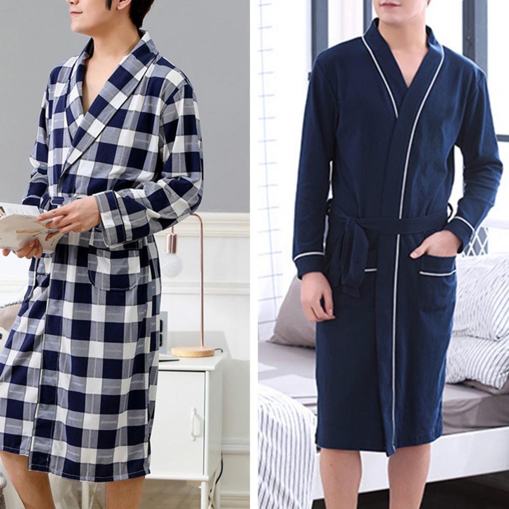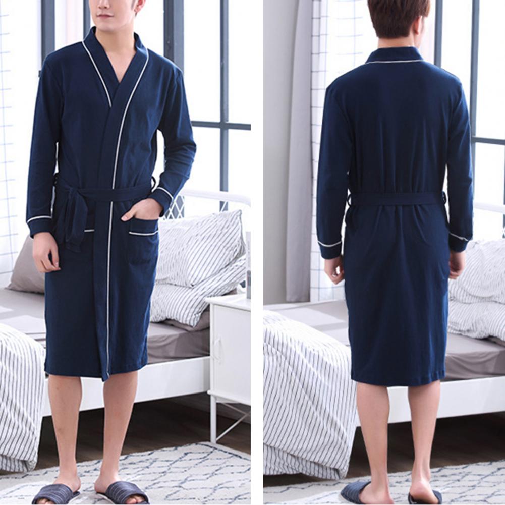 Повседневные мужские мягкие цветные банные халаты с карманами и длинными рукавами, домашняя одежда для сна