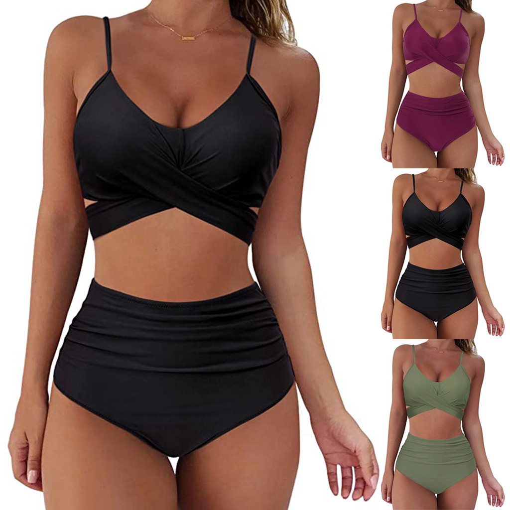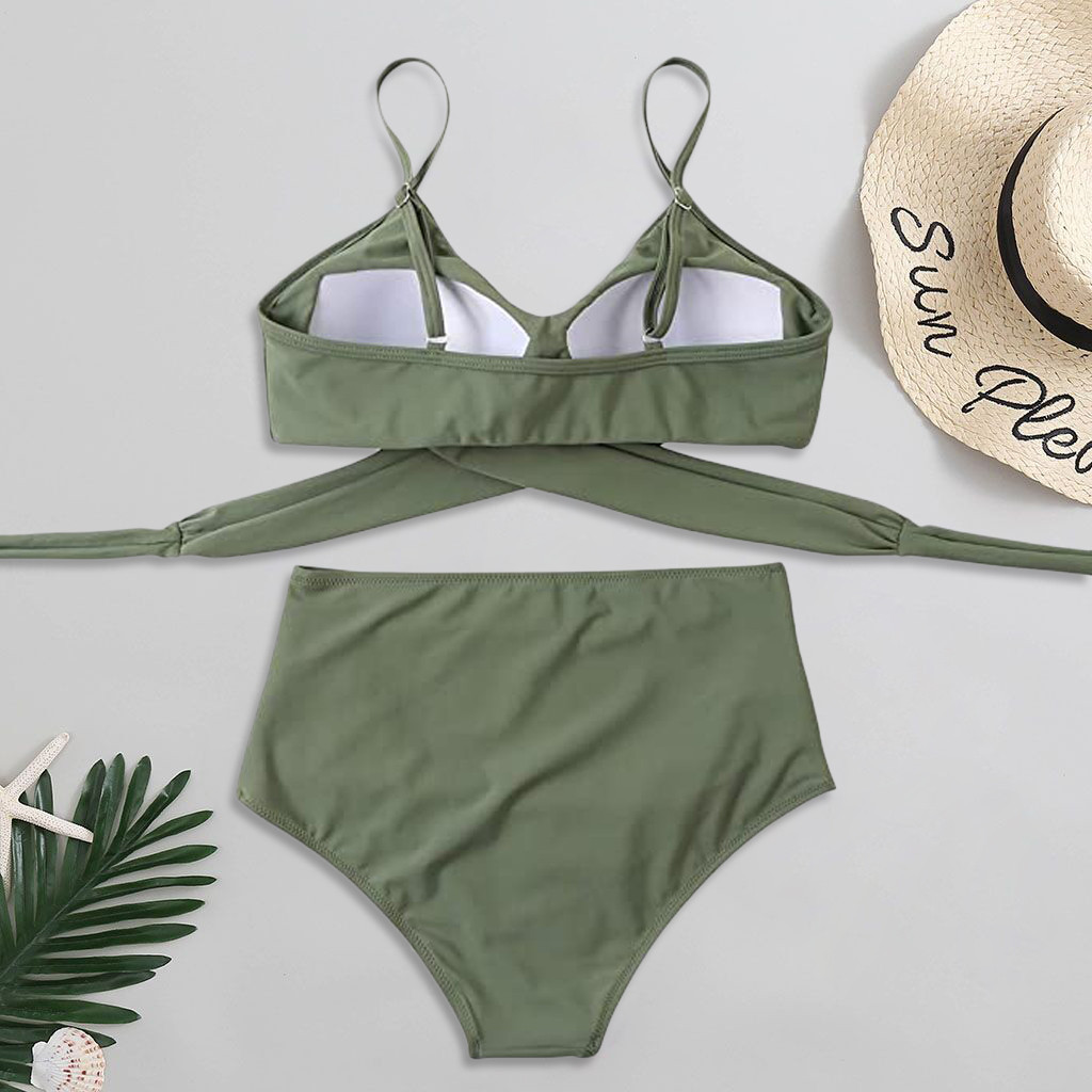 Women Sexy Soild Print Bikini Set Push Up Bathing Swimwear High waist Swimsuit