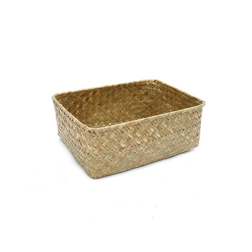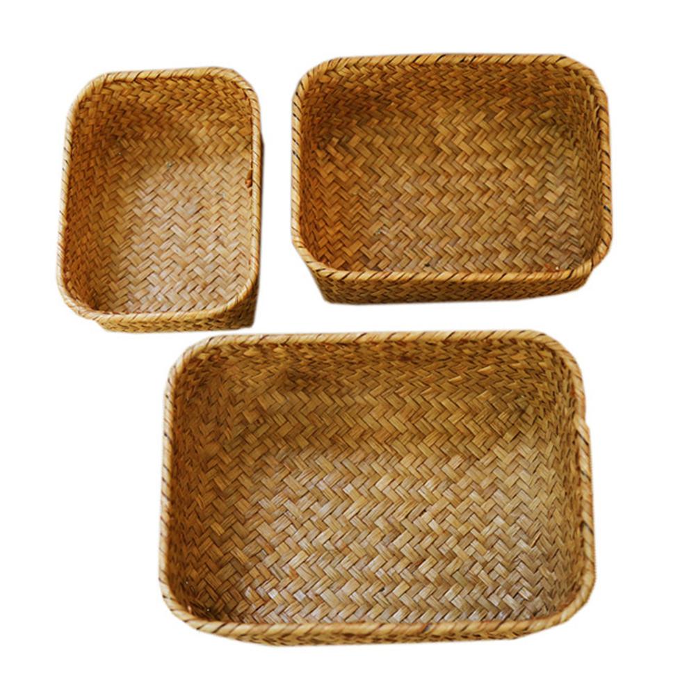 Country style Handmade Straw Dried Flower Fruit Basket Three-piece Rattan Box Candy Earphone Organizer Desktop Storage Basket