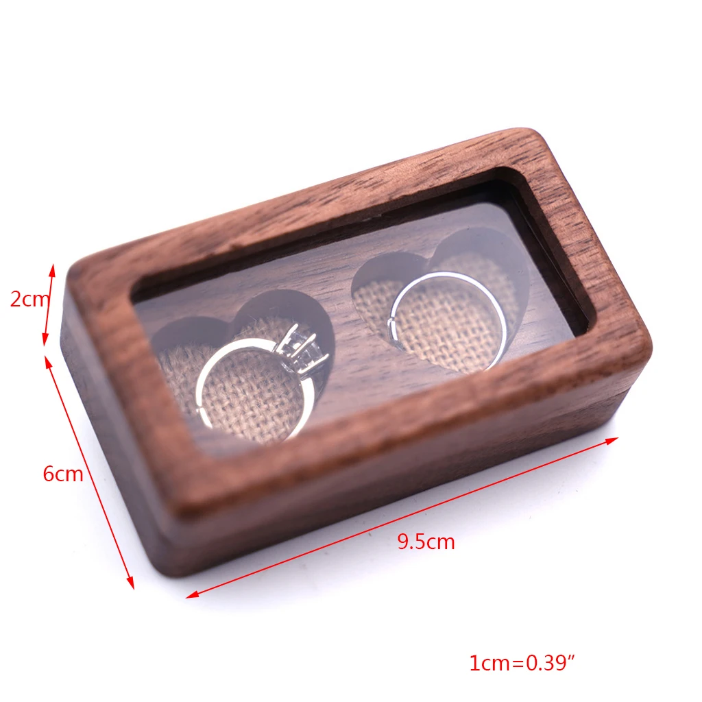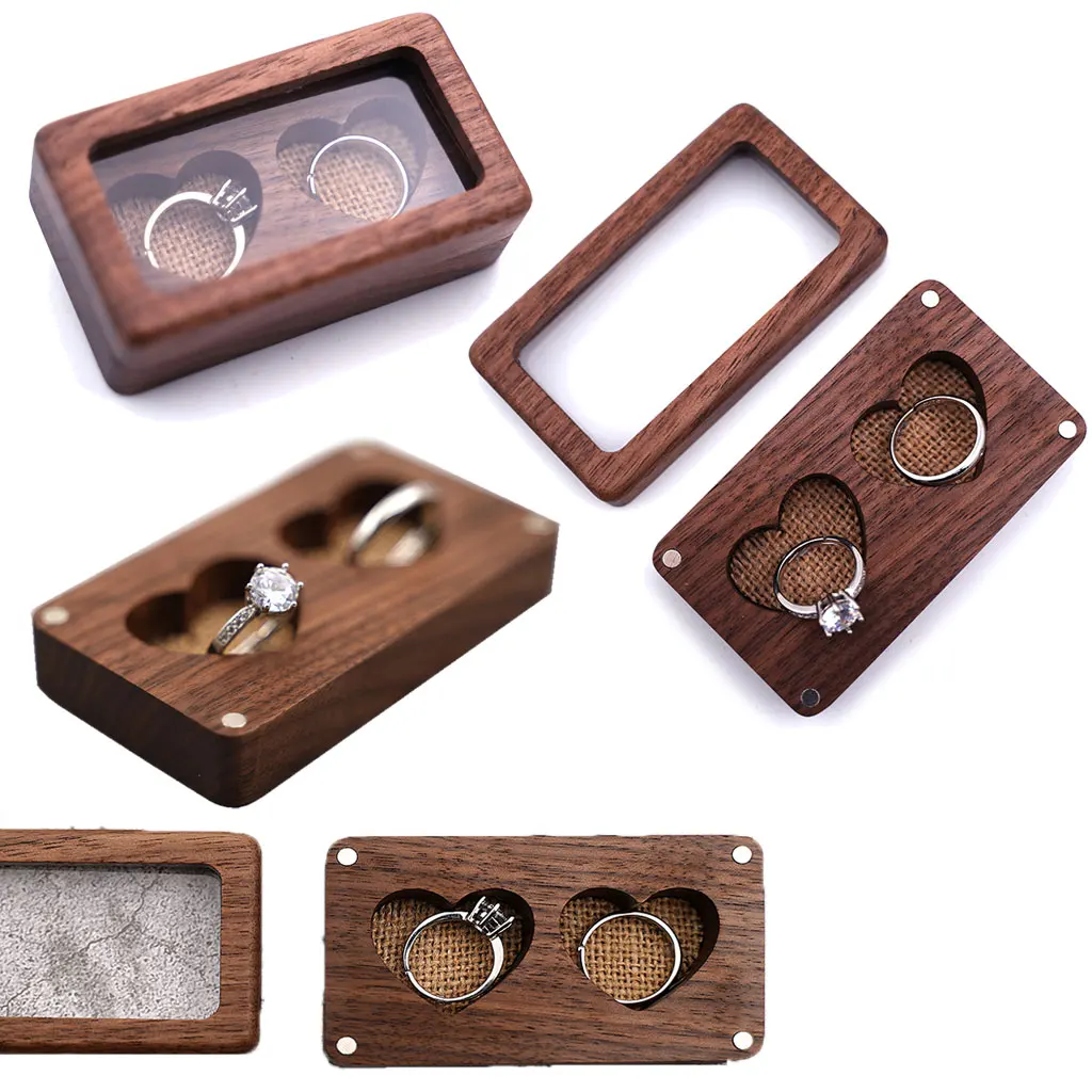 Коробка для ювелирных изделий из орехового дерева для помолвки, свадебной церемонии, предложение для хранения колец, портативный держатель для колец, деревенская коробка для свадебных колец