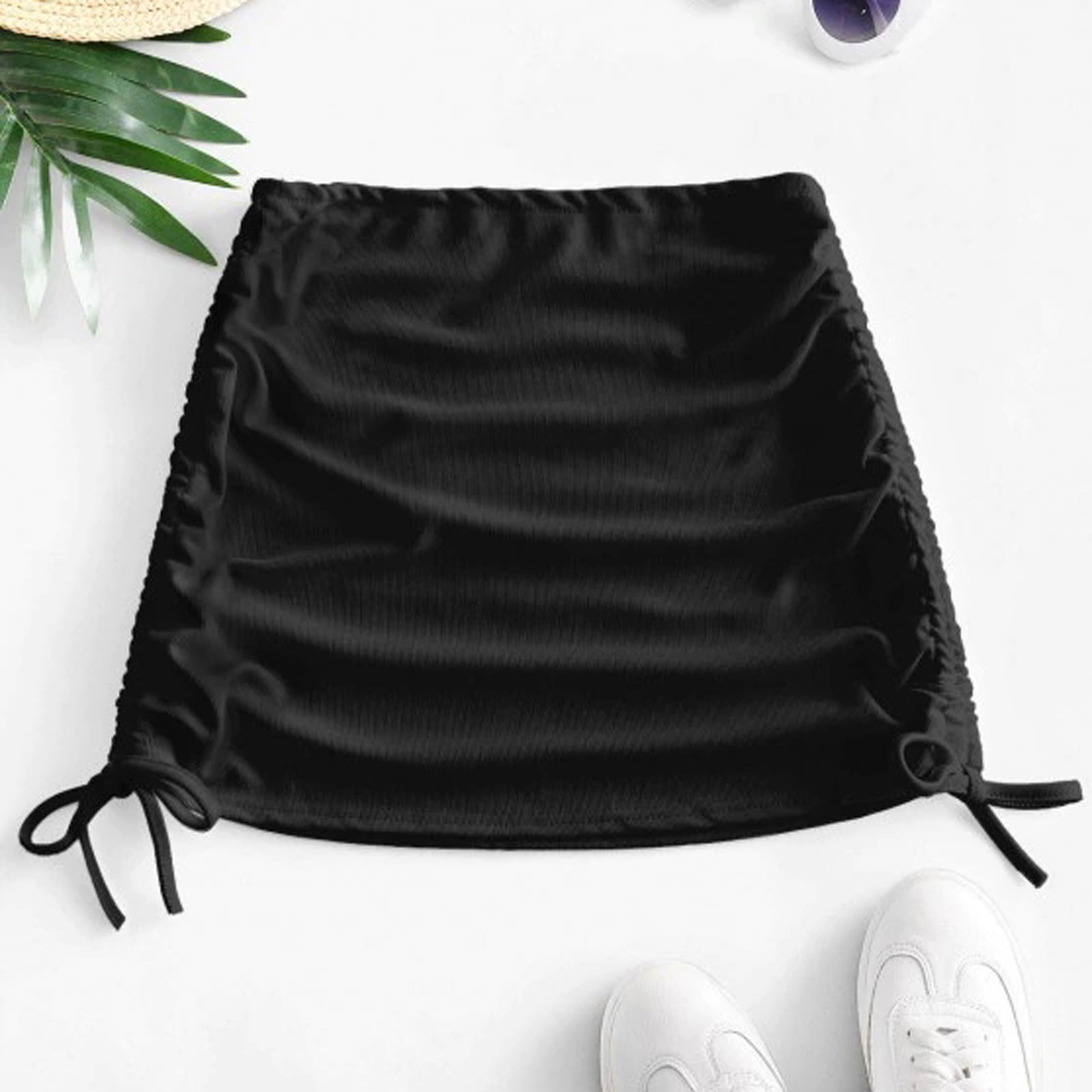 Женская мода ребристый Cinched сторона мини-юбка бикини пляжные плавки Купальники