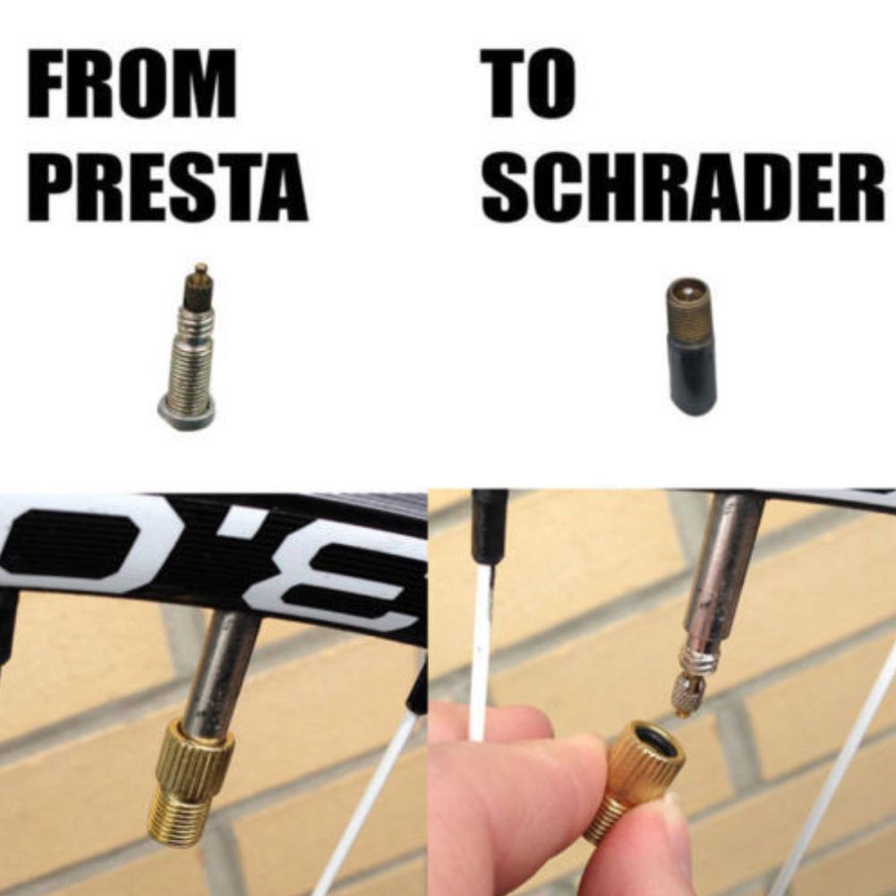Преобразуйте клапан presta в клапан schrader, а также превратите Британский клапан в американский клапан.