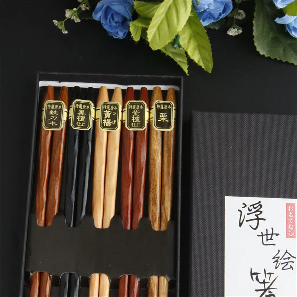 5 пар японские многоразовые палочки для еды Натуральный Бук палочки для еды китайский набор дерева