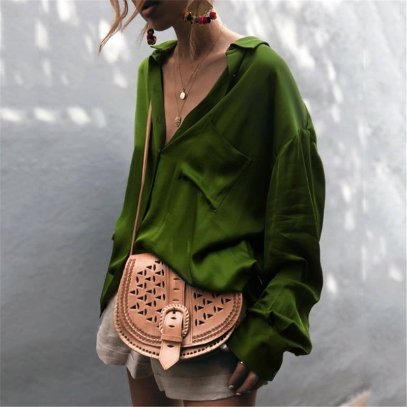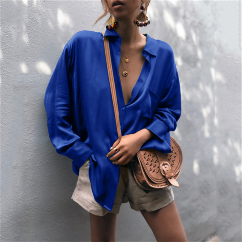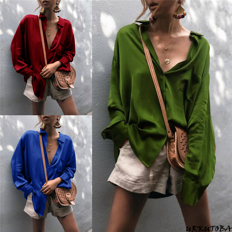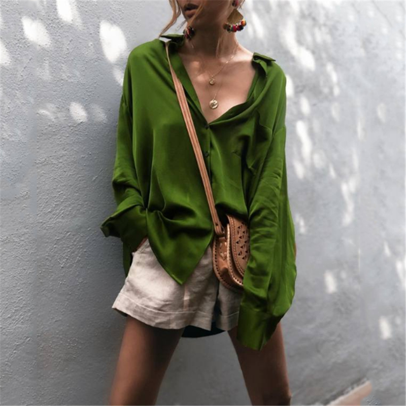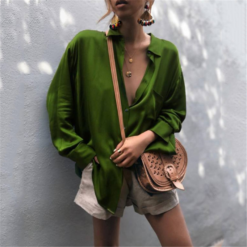 Новинка Harajuku Весна Осень женская блузка с длинным рукавом Повседневные рубашки для отдыха атласная рубашка для офиса женские синие красные зеленые Топы