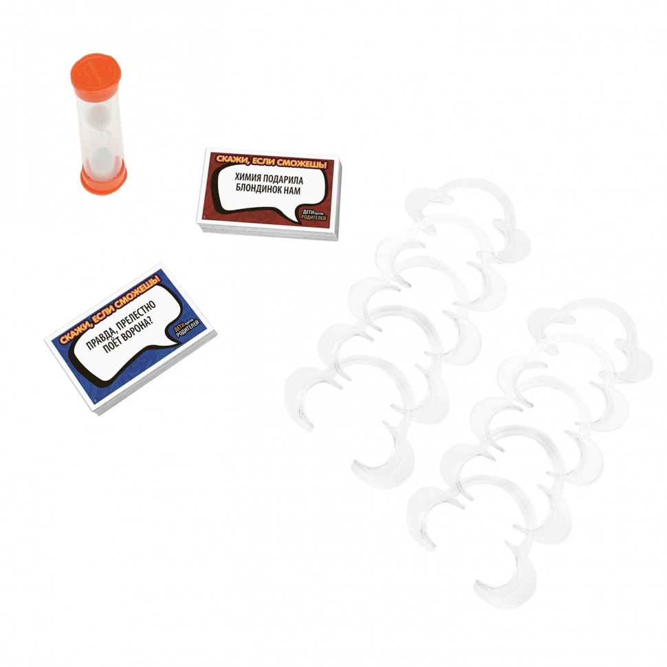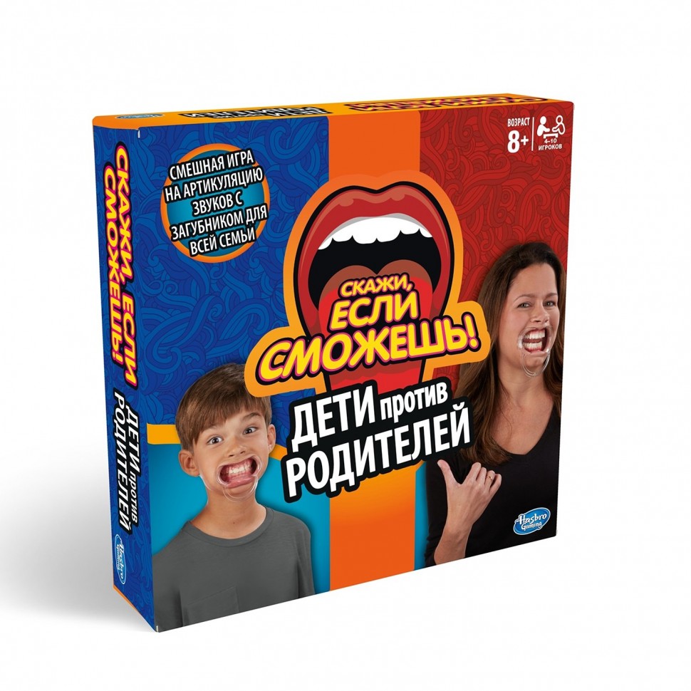Соберите семью для с удовольствия и громкого смеха с этой смешной игрой Скажи, если сможешь! Игроки пытаются сказать разные фразы, нося специальную насадку для рта, которая не дает им закрыть рот. Игроки читают фразу как можно лучше для своих товарищей по команде, но это не так легко сделать, так как Таймер отсчитывает время, а насадка мешает им правильно формировать слова. Выигрывает команда с наибольшим количеством карт в конце игры.