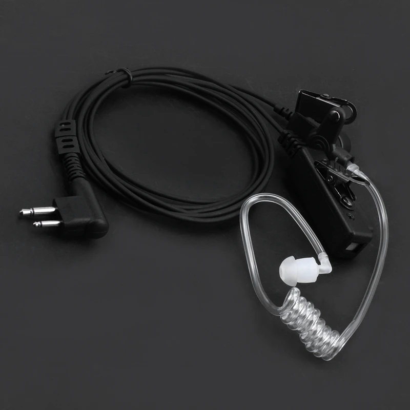 Transparent flexible acoustic tube. Soft earbud fits snugly to either left or right ear. With built-in line microphone, a push-to-talk button. Clear sound performance without distortion. Application for the people work in police station, military, , security office, eatery, etc...