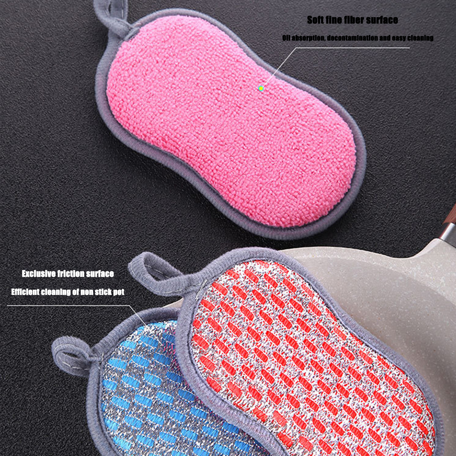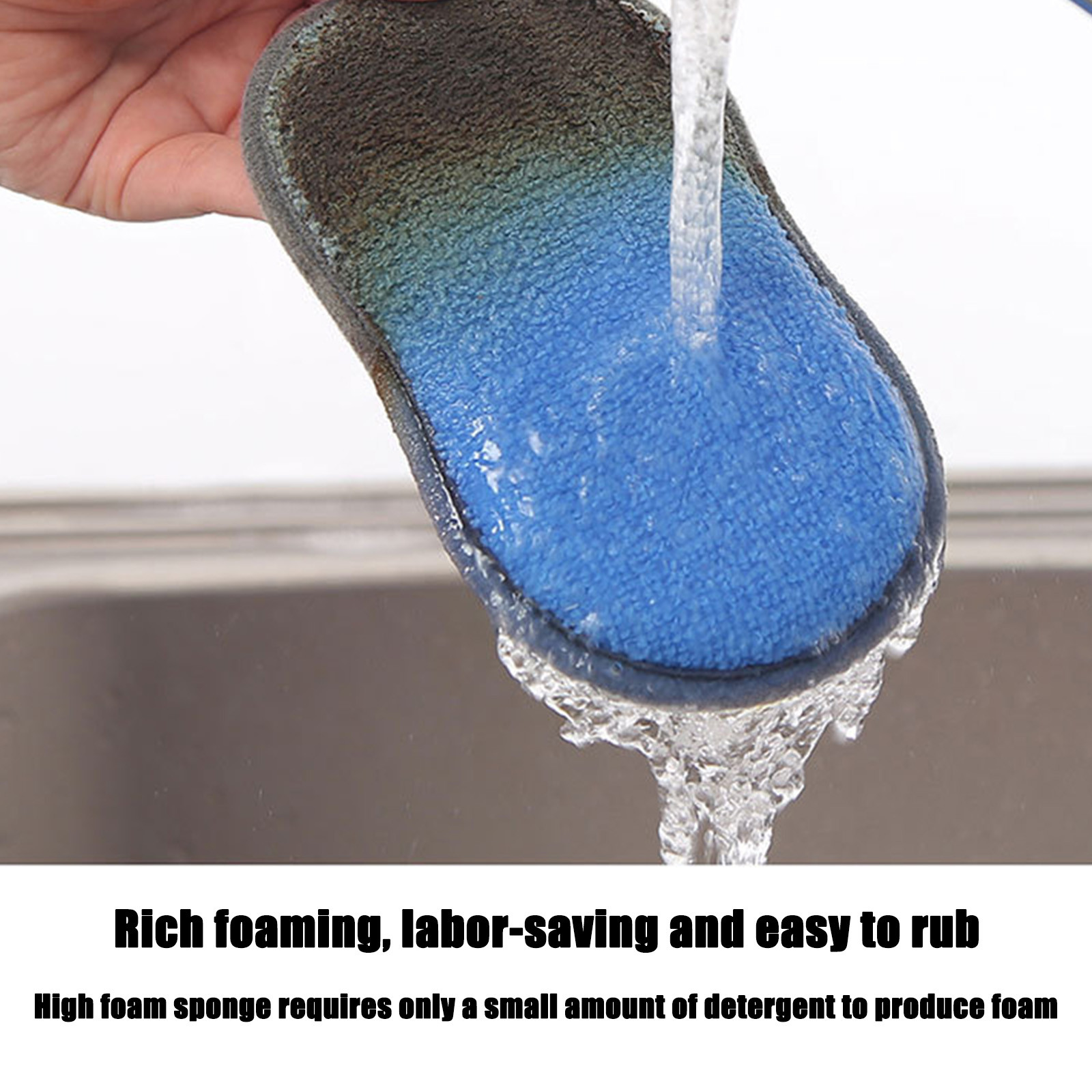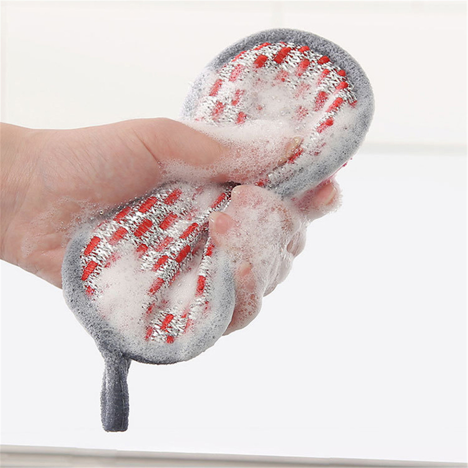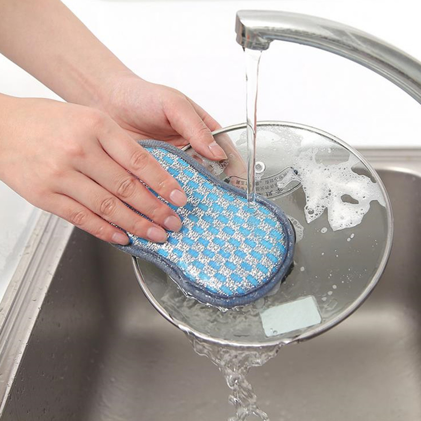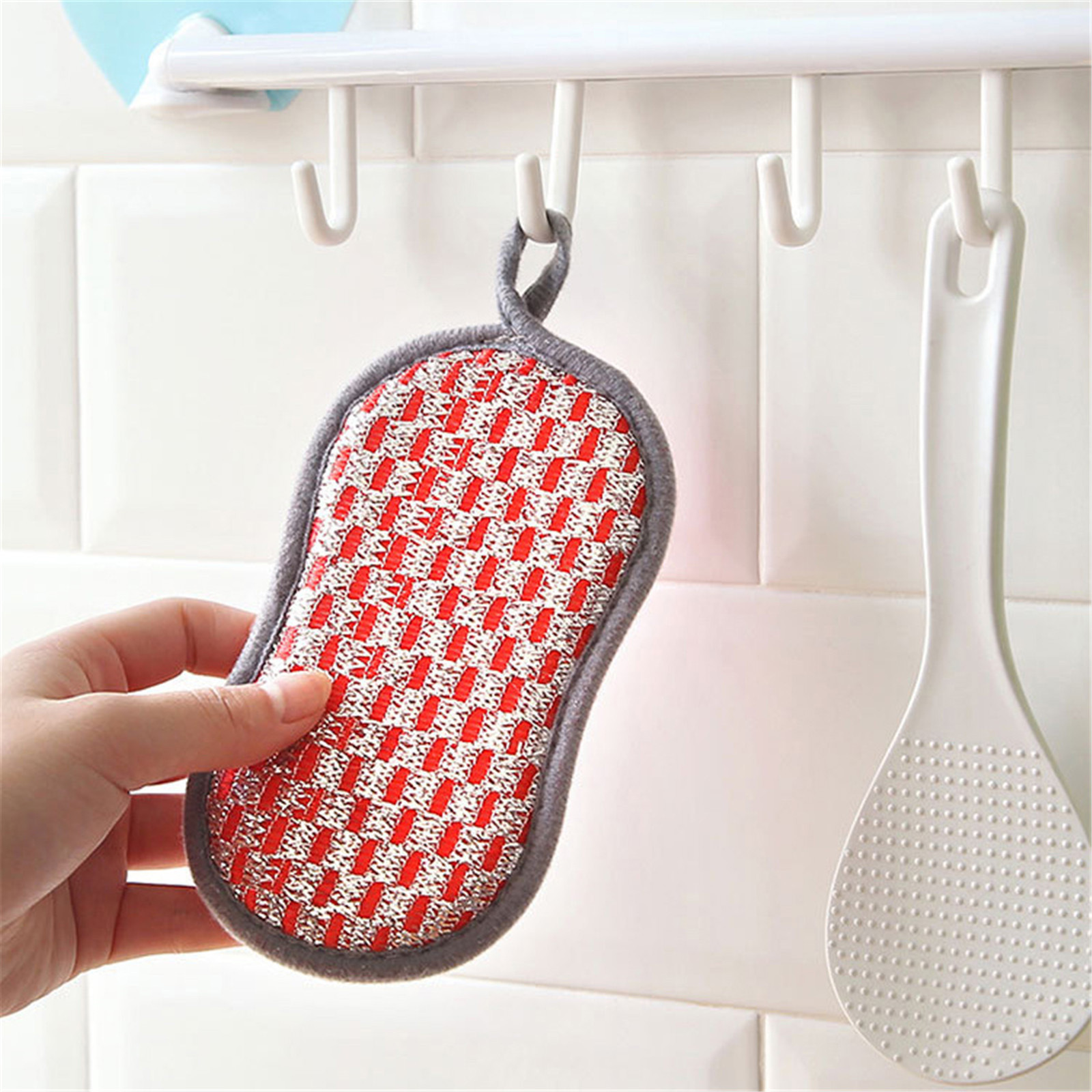 Изготовлен из высококачественного материала, который является мягким, экологически чистым, анти-бактерий, анти-плесени и запаха. Удалите пятна и очистите кухню. Толстая губка имеет сильное поглощение воды. Подвесная конструкция для удобного хранения и вентилируемого дренажа. Подходит для очистки краев горшка, деревянных шпателей, разделочных досок, чаш и тарелок и т. д.Спецификация: