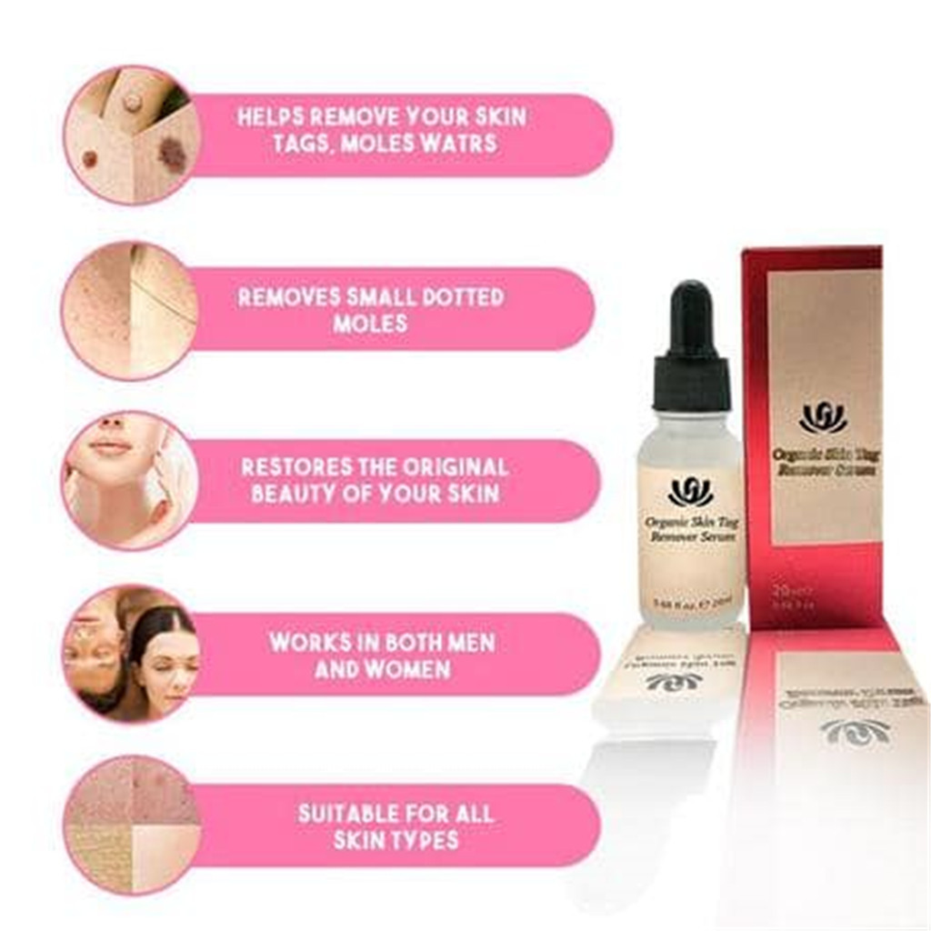 Органические решения тегов сыворотка выравнивает родинки и пятна, не оставляя никаких шрамов. Идеально подходит для удаления родинок, бородавок, кожных ярлыков, кожных пятен, веснушек и многого другого. Он очень безопасен в использовании. Подходит для всех типов кожи. Также подходит для тела и ног.
