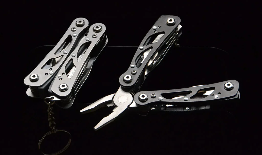 Тактические плоскогубцы 13 в 1 оснащены плоскогубцами, обычными плоскогубцами, кусачками для проводов, ножом, средней плоской отверткой, перекрещенной отверткой, двухсторонним полировщиком, открывалкой для бутылок (с большой плоской отверткой), мини лопатка, мини плоская отвертка, стоматологический нож (удалитель рыбьей чешуи) и функция брелока. Он может эффективно помочь вам справиться с различными проблемами на открытом воздухе.