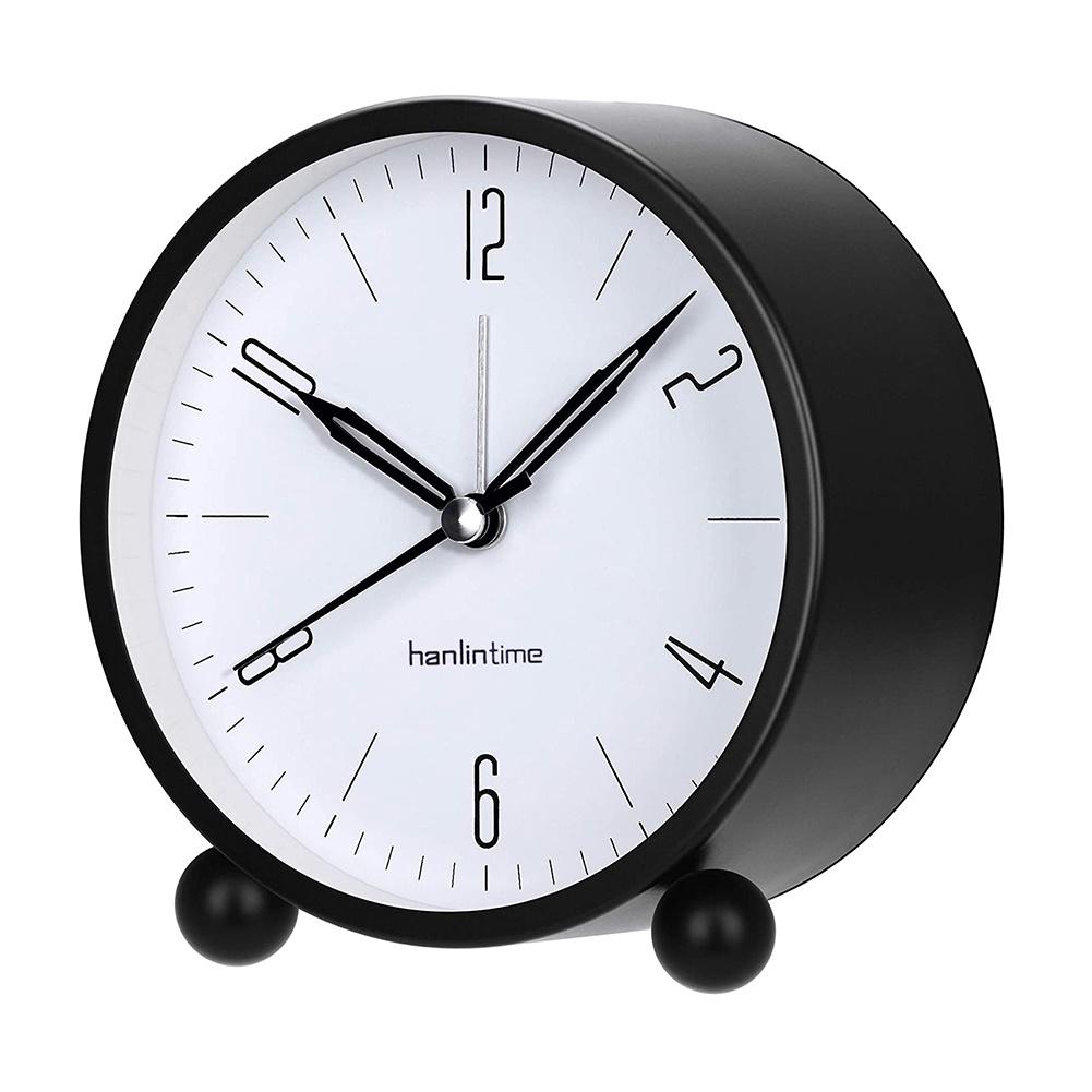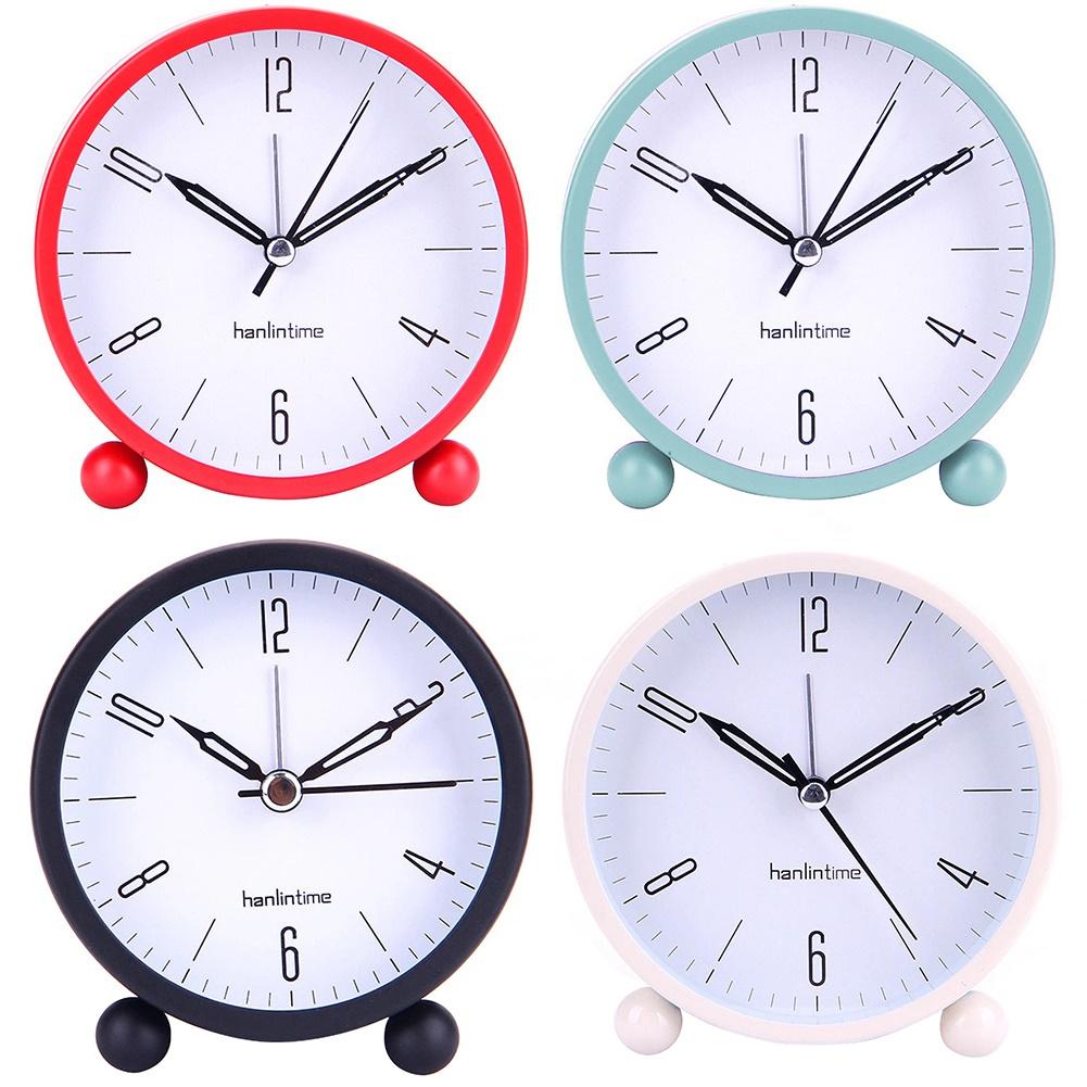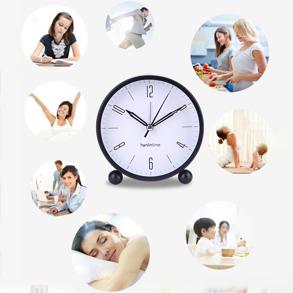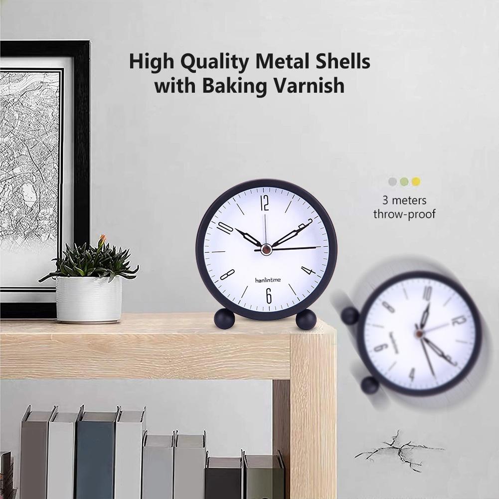 4inch Metal Round Alarm Clock Quiet Desktop Bedroom Battery Operated Timepiece