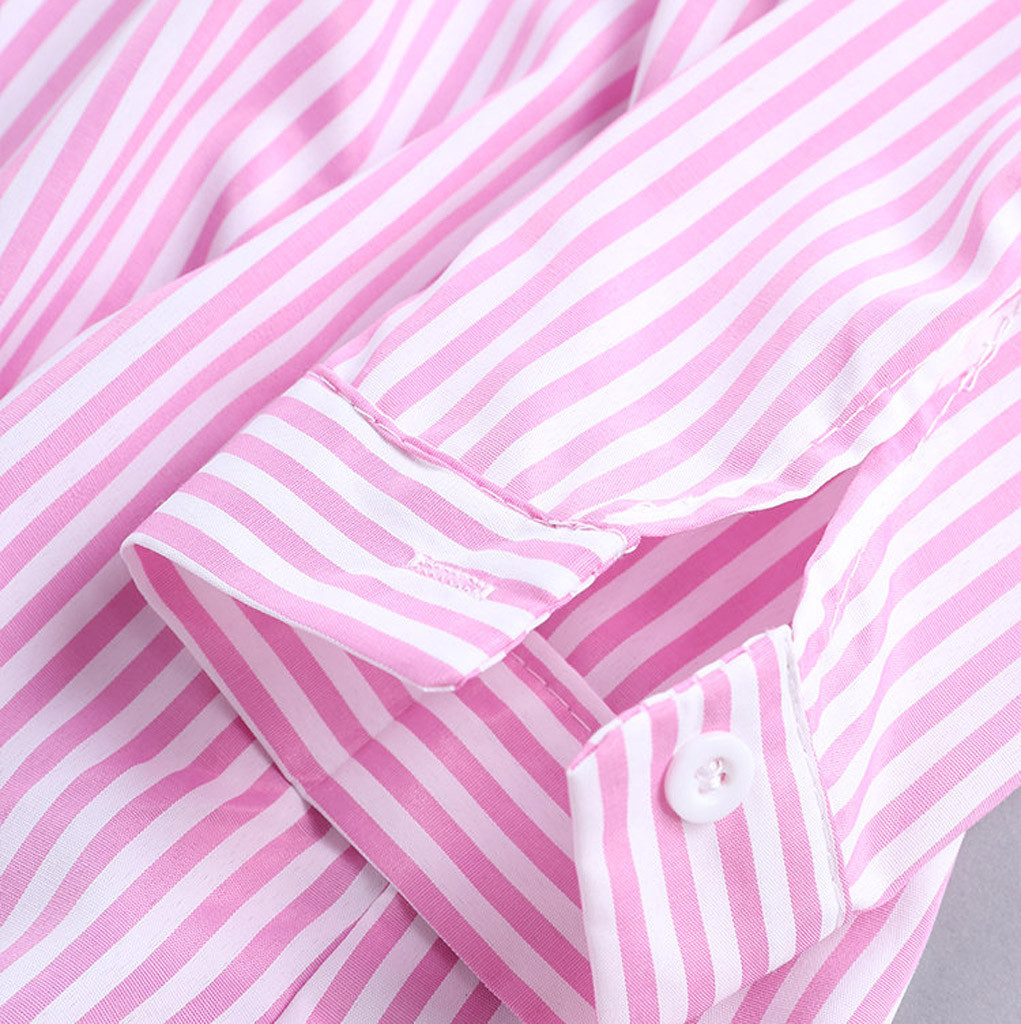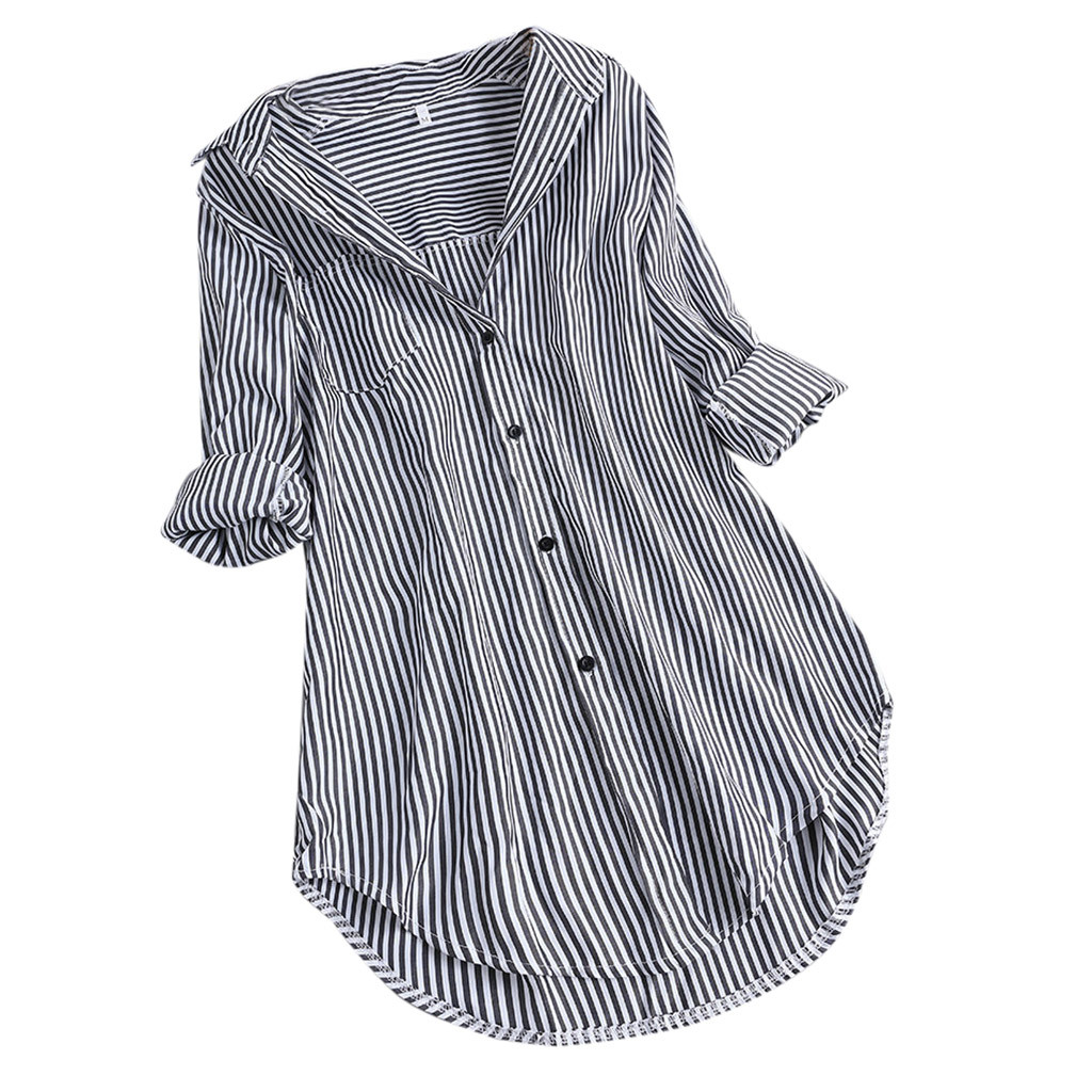 Женский шикарный Полосатый Топ с длинным рукавом и отложным воротником, Свободный Топ на пуговицах, блузка