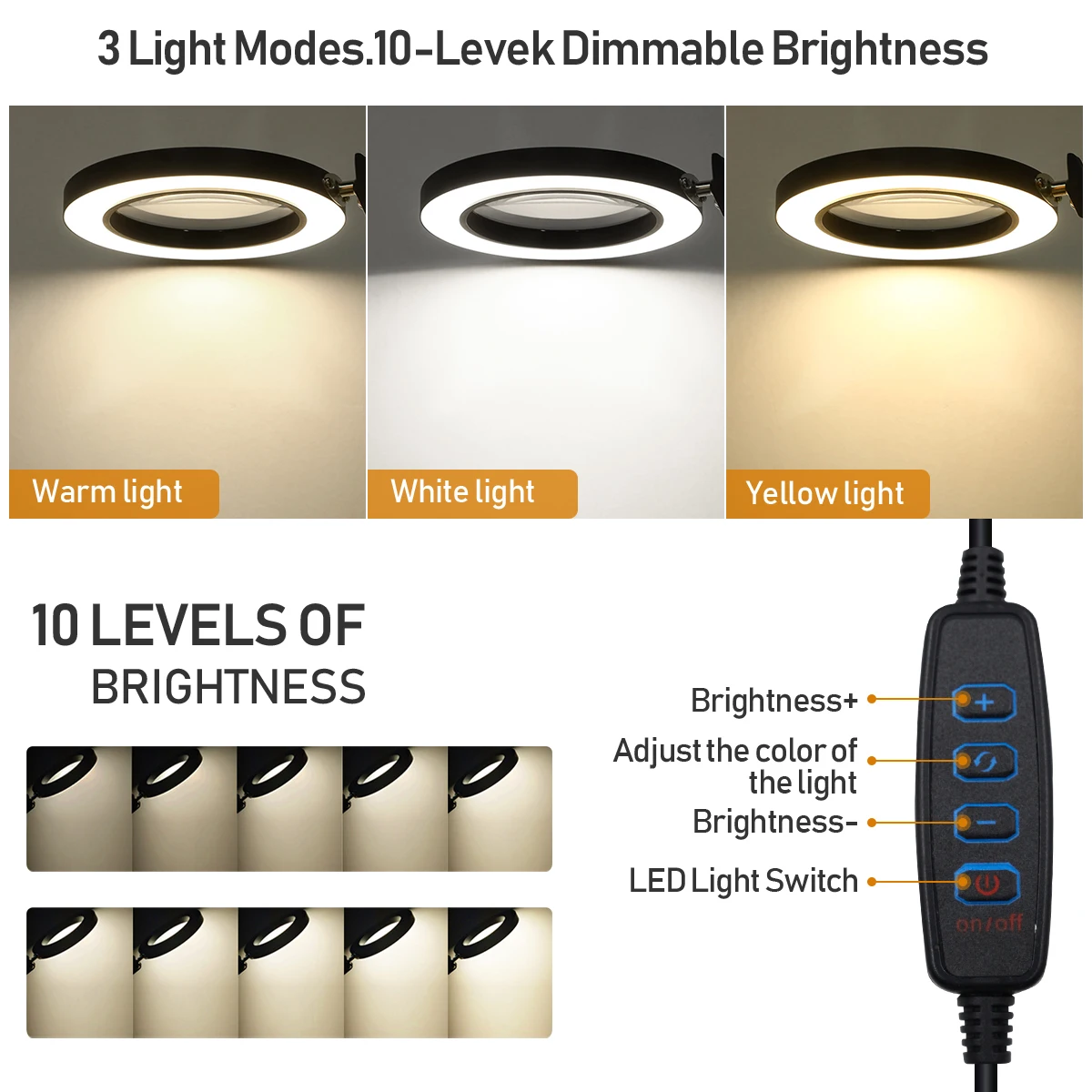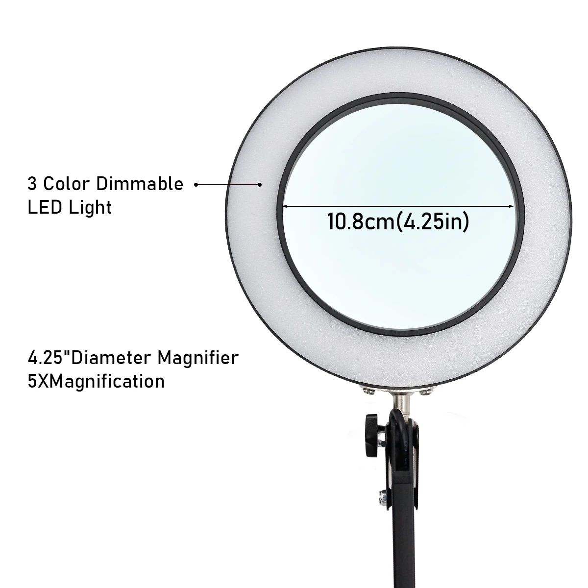 Светодиодный светильник с лупой металлический поворотный кронштейн лампа лупа с плавной регулировкой 3 цвета режимы 5X увеличение 4,1 "Диаметр Стекло объектив