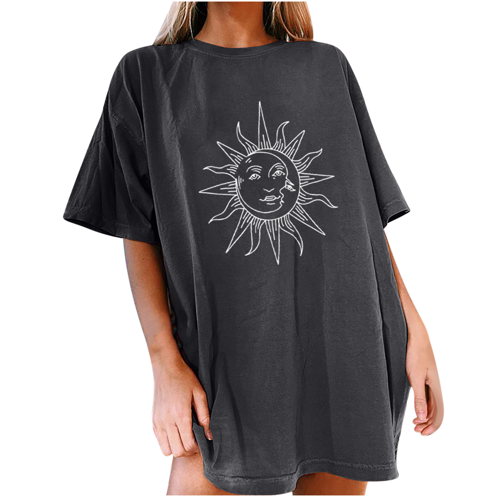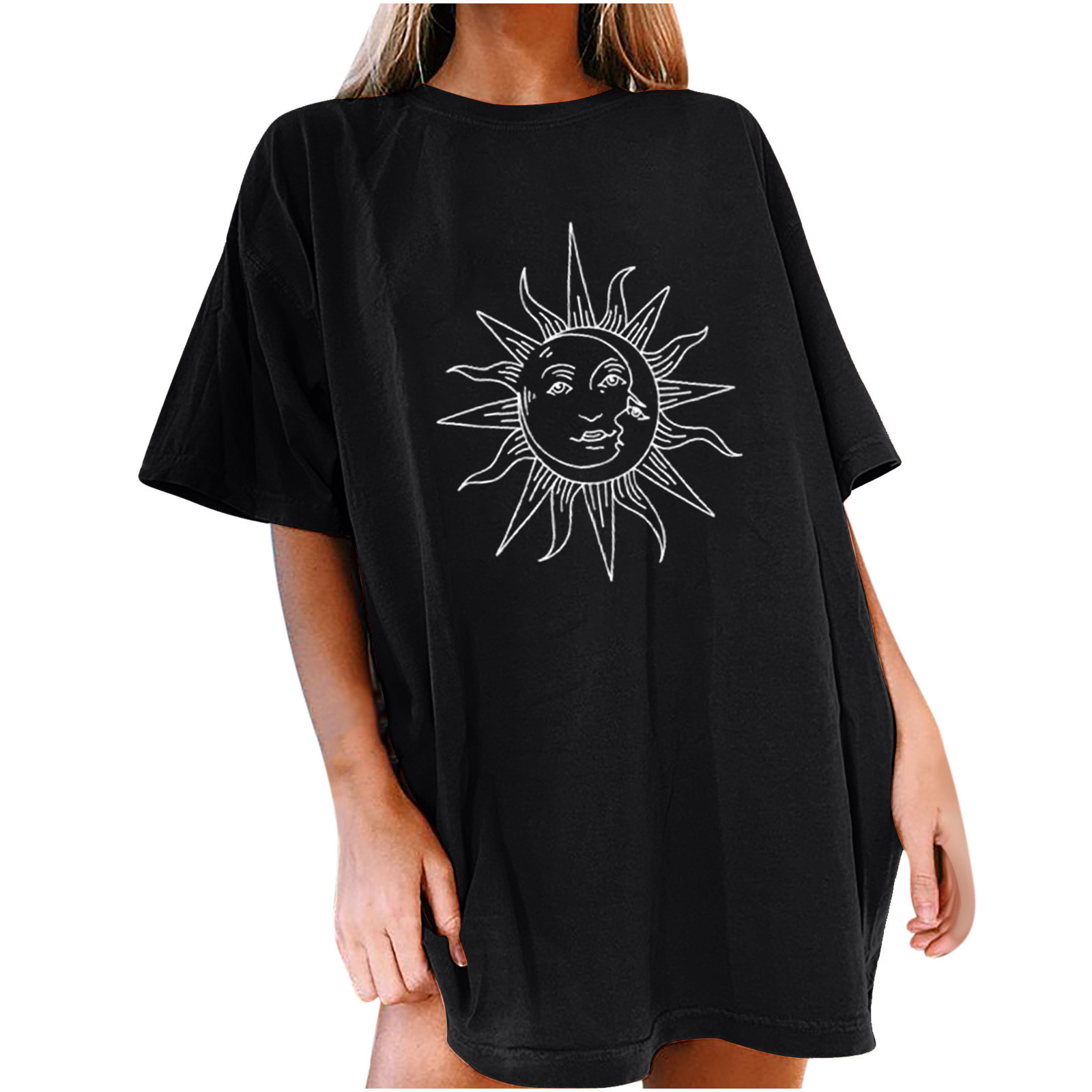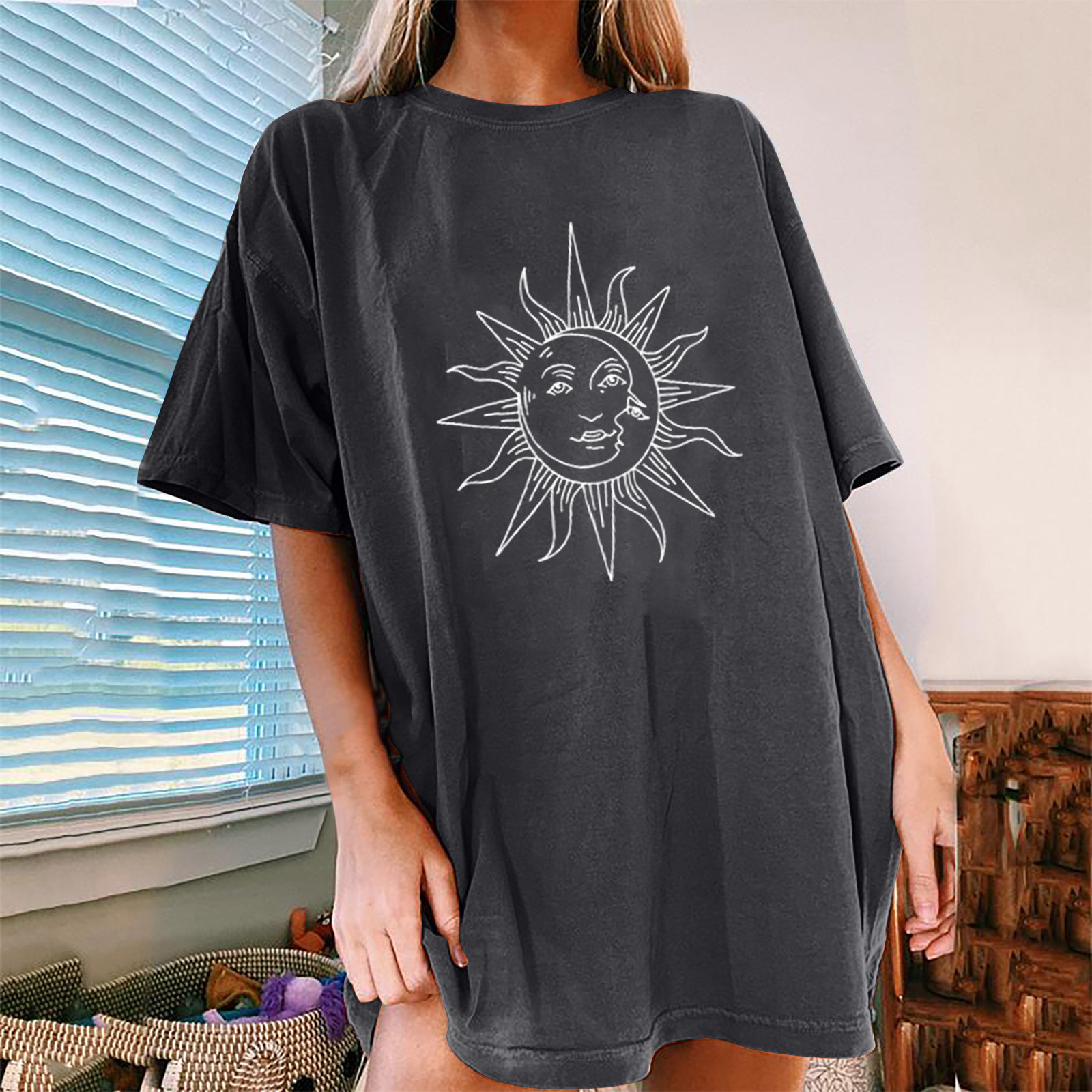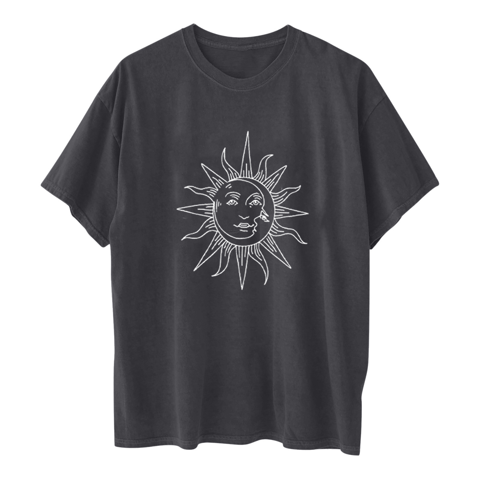 Women's Vintage Sun And Moon Printed Pattern Casual Short Sleeve Tops Blouse