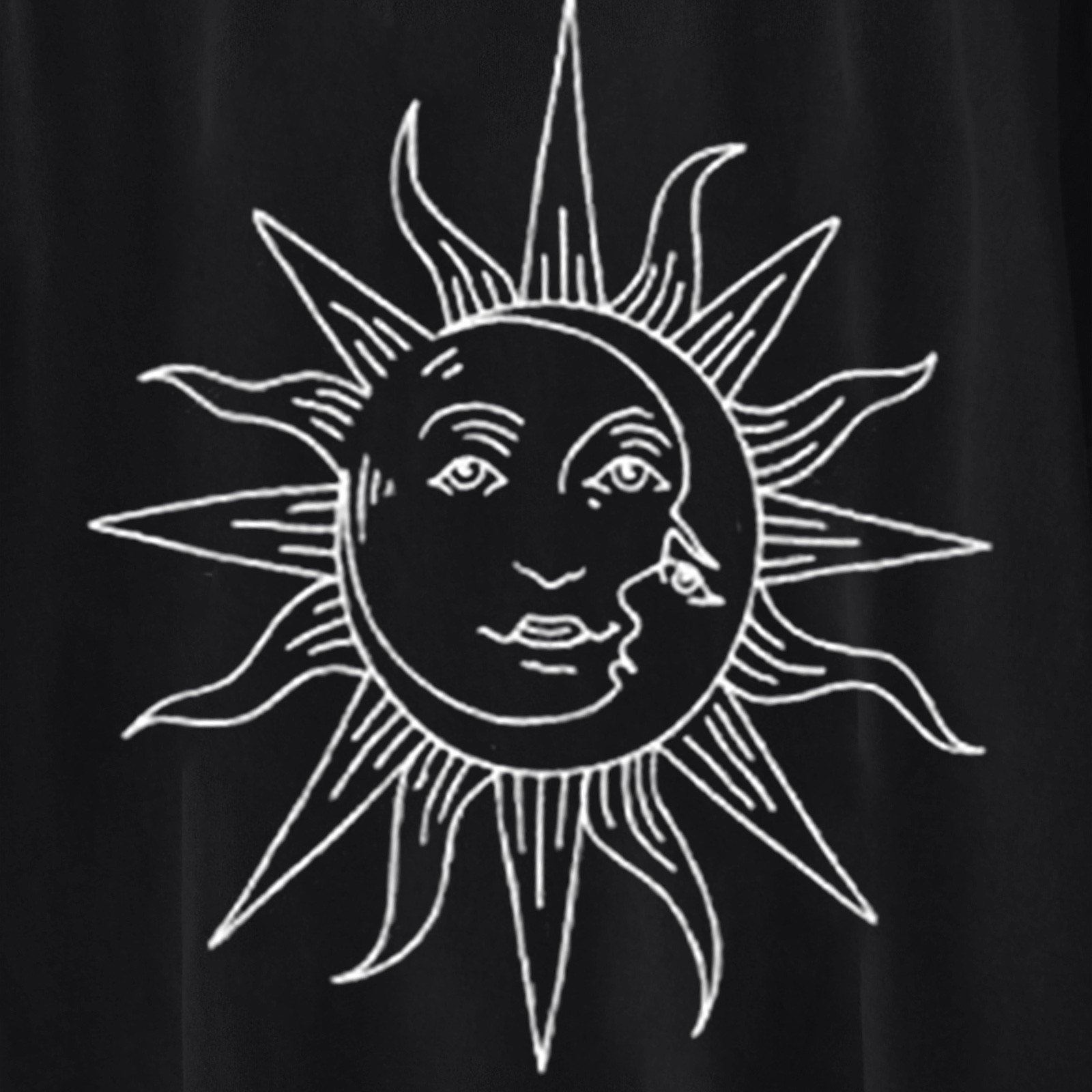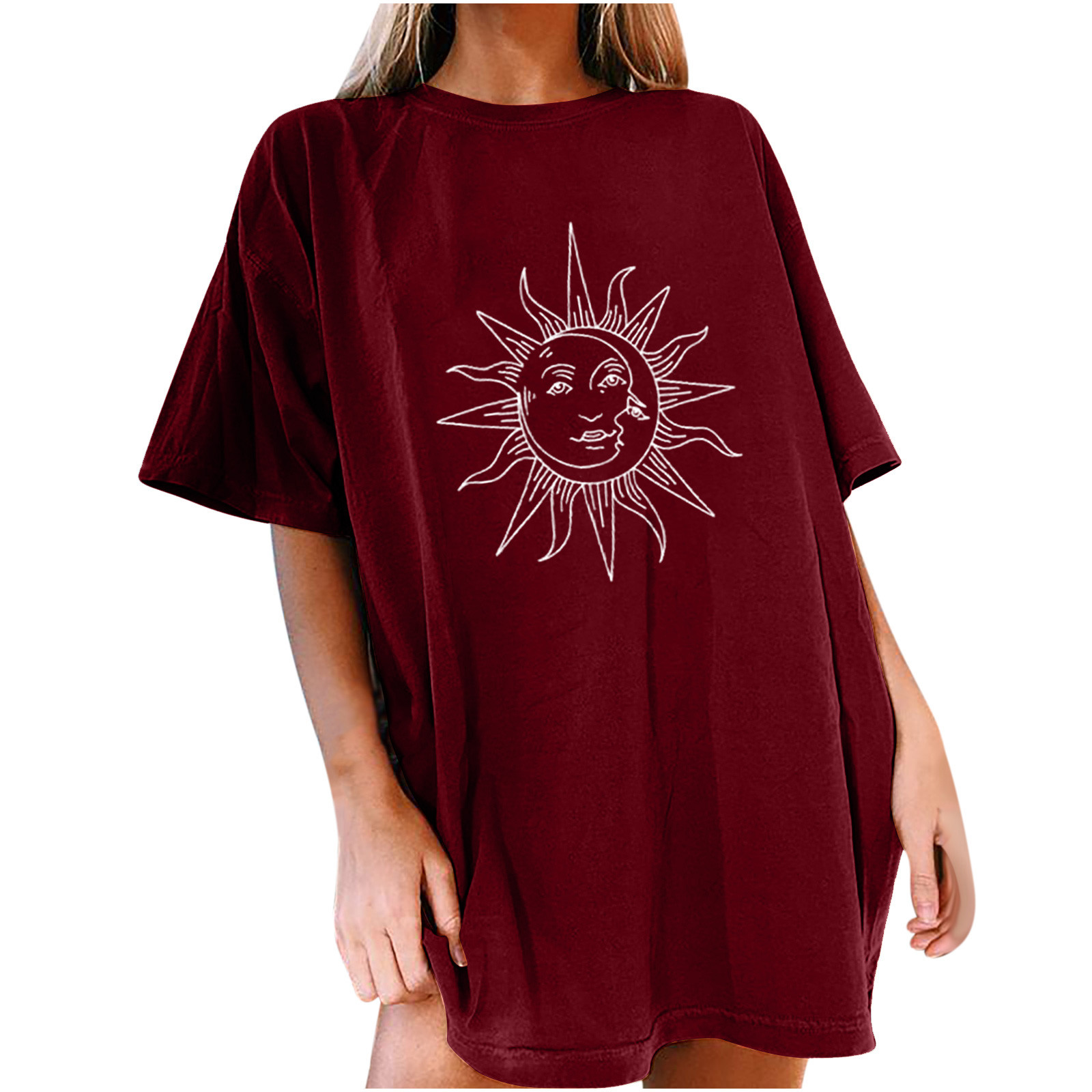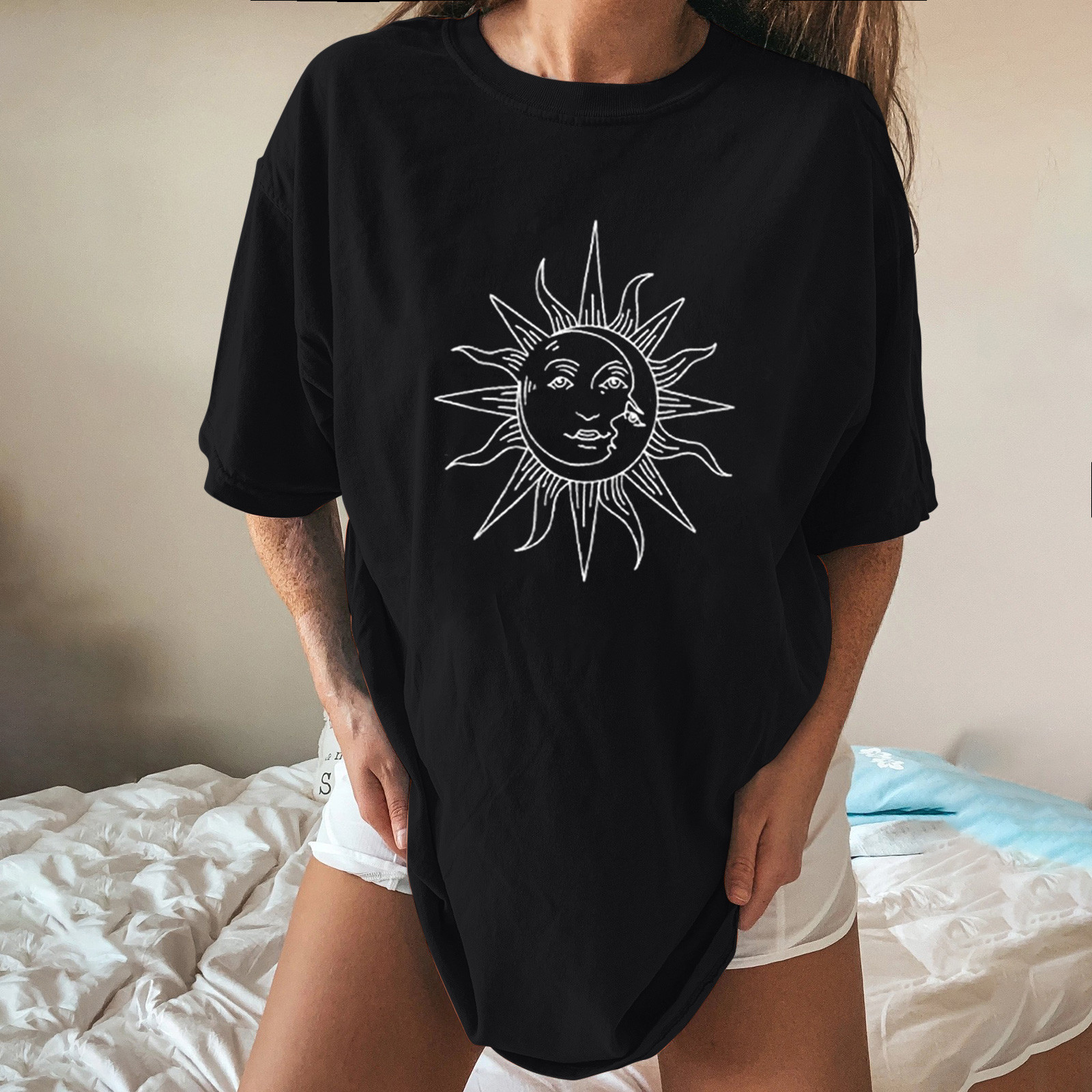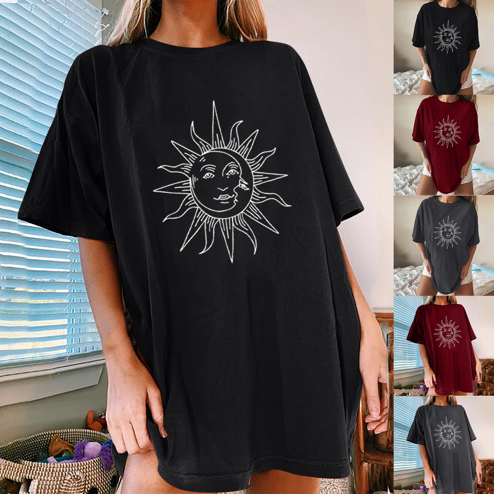 Women's Vintage Sun And Moon Printed Pattern Casual Short Sleeve Tops Blouse