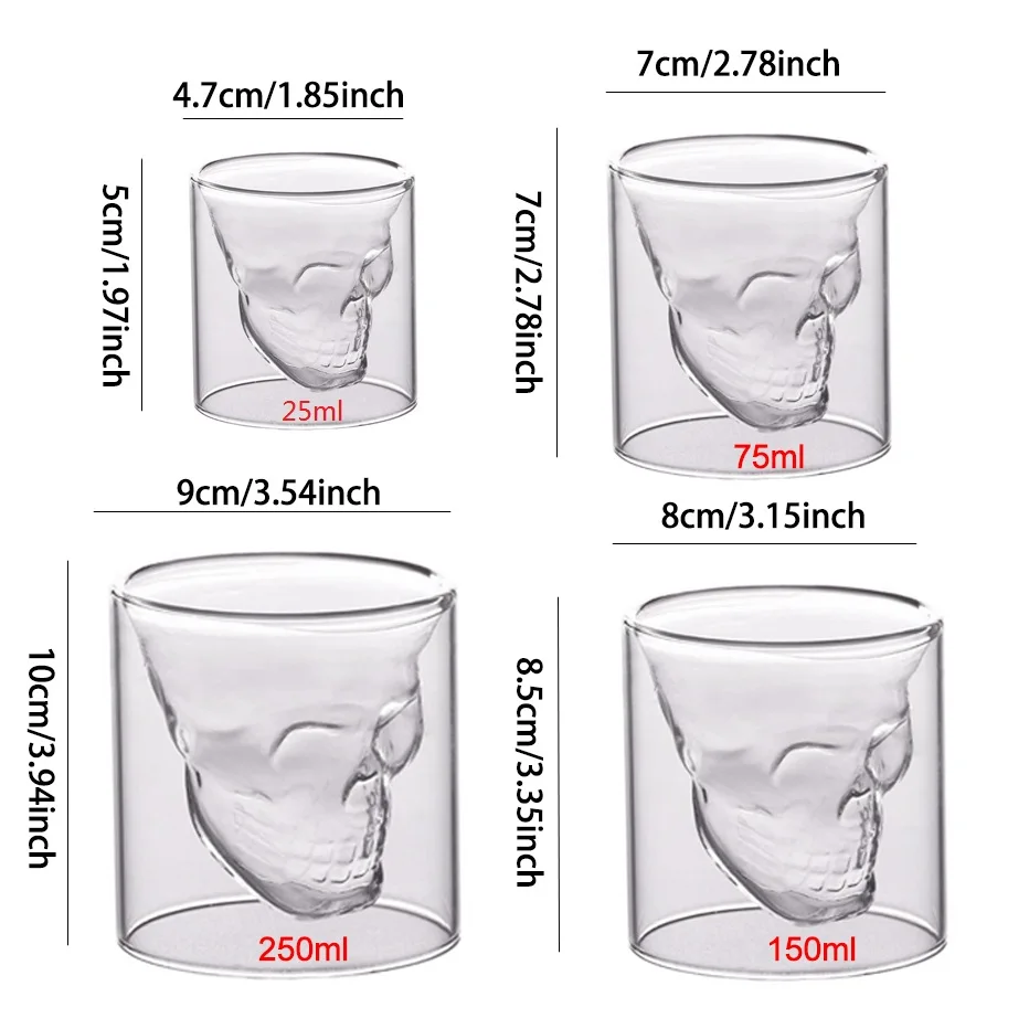 Особенности продукта: 1. Название продукта: винный графин в форме черепа 2. Персонализированный винный графин, может также использоваться в качестве домашнего декора 3. Функция продукта: Графин для вина Параметры продукта: 1. Материал: высокое боросиликатное стекло 2. Емкость: около 350 мл-1000 мл 3. Термостойкость: около-20 градусов до 150 градусов 4. Размер: 350ml: около 12,5*11,5*20 см/4,92*11,5 * 7.87in 550ml: около 15*13,5*22 см/5,91*5,31 * 8.66in 1000ml: около 22,5*16,5*15,5 см/8,86*6,50 * 6.10in Особенности: 1. Дизайн «хрустальный череп» уникален и моден 2. Добавьте некоторые паранормальные Вечерние 3. Отлично подходит для тематических вечеринок, бара, дома и т. д. 4. Прекрасный подарок для вас или ваших друзей Характеристики: 1. Материал: стекло 2. Емкость: 25 мл 75 мл 150 мл 3. Размер: 25 мл 5х4, 7 см 75 мл 7х7, 1 см 150 мл 8,6x8 см 4. Цвет: прозрачный