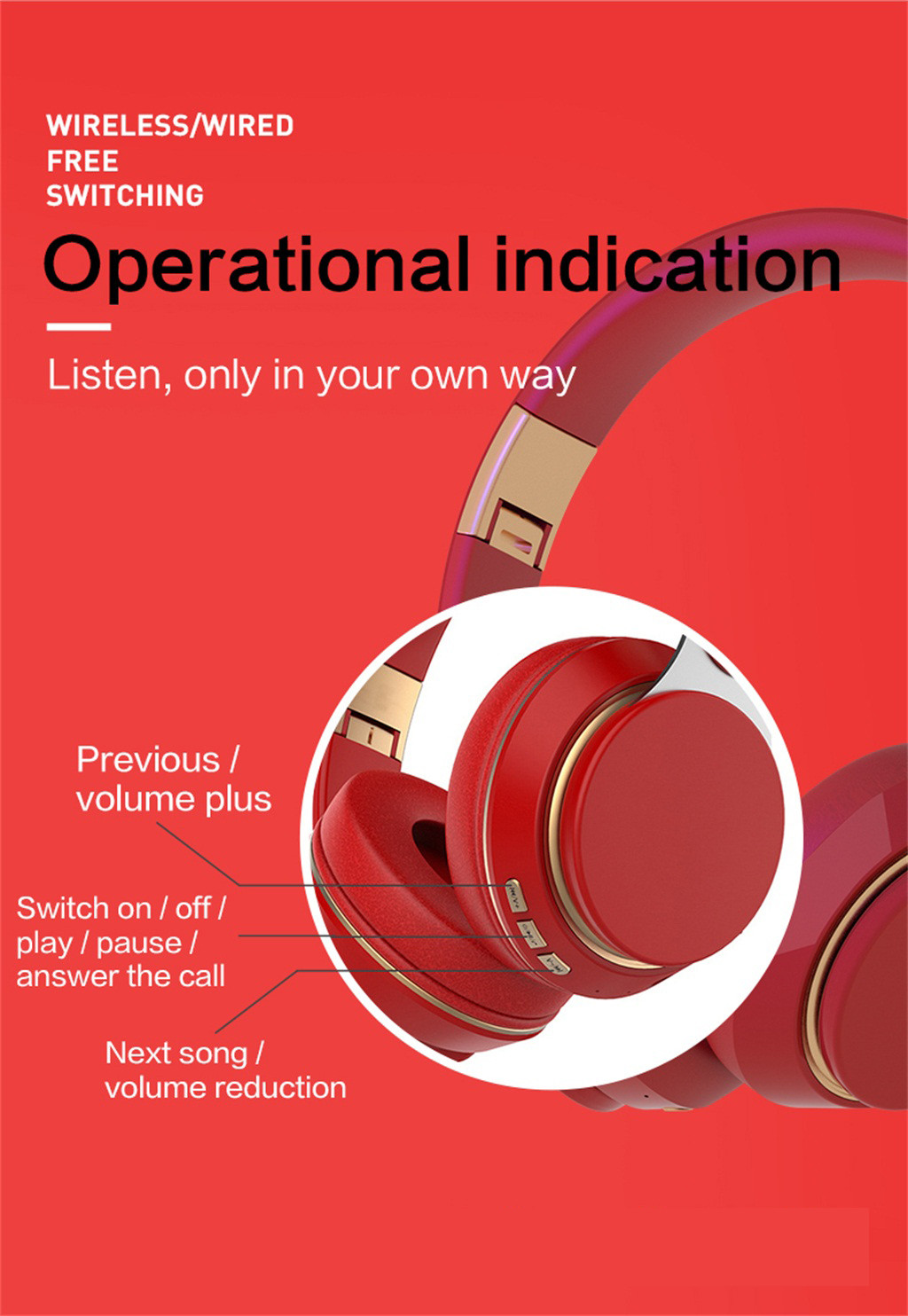 Supra-Aural Earmuff гарнитура стерео гарнитура TF карта 3,5 мм Интерфейс