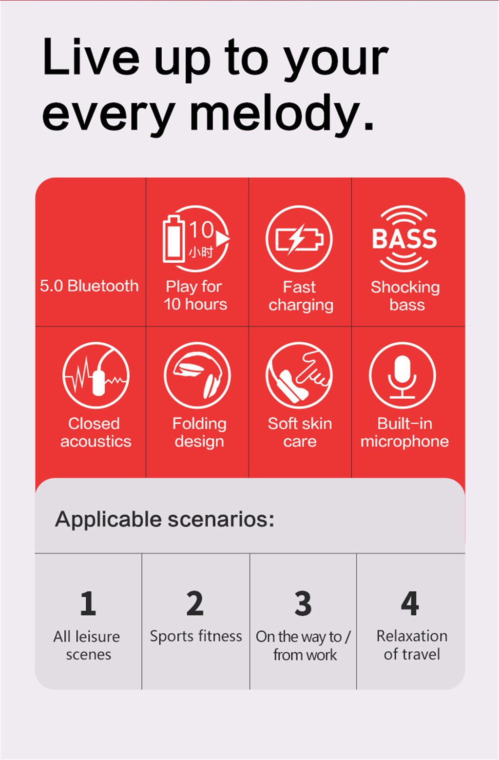 Потоковая музыка до 8-10 часов за одну зарядку; Подключение входящего в комплект аудио