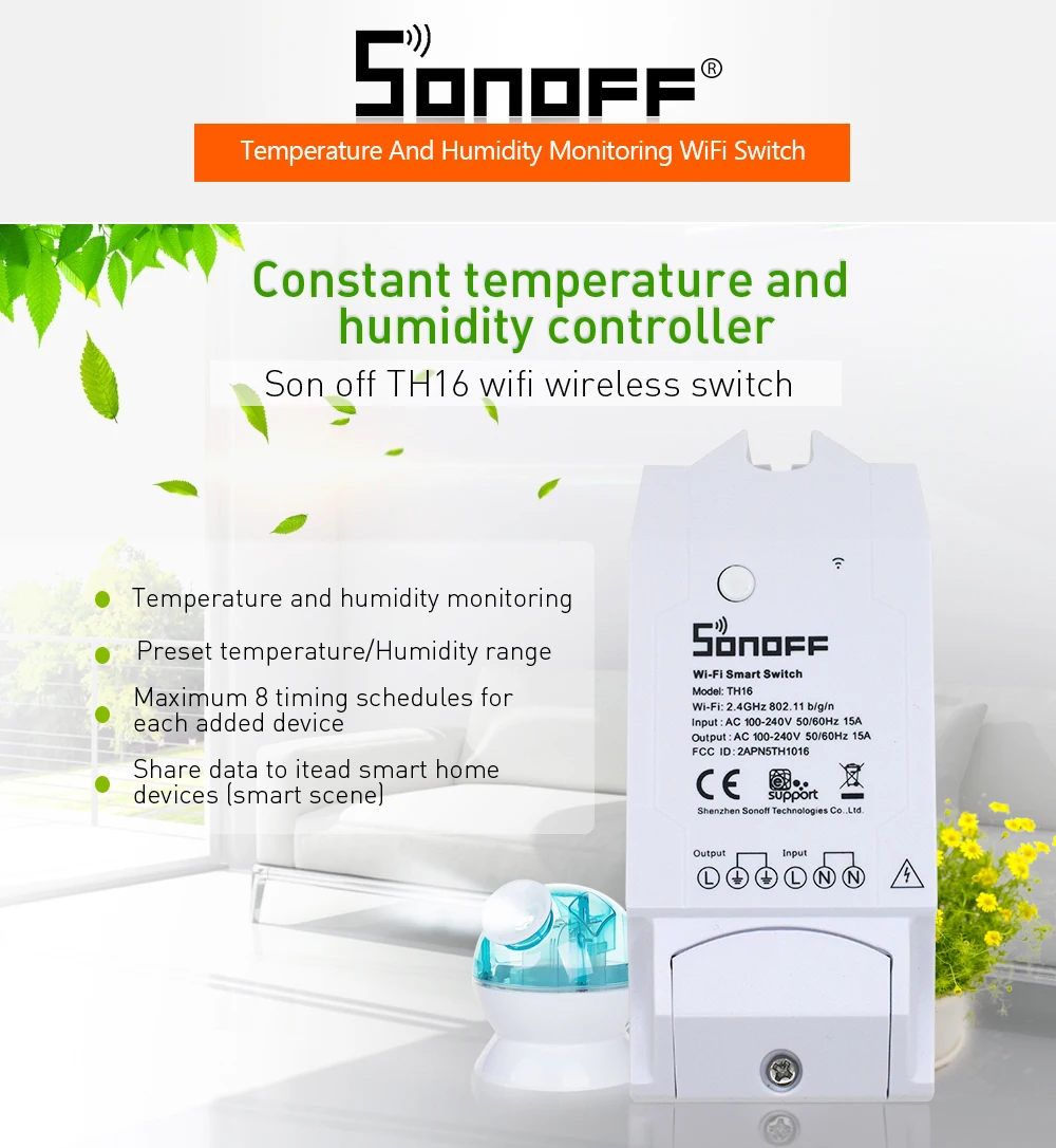 Sonoff TH10 и Sonoff TH16 с Si7021/DS18B20 датчик температуры и влажности AL560 удлинитель Модуль Автоматизации умного дома