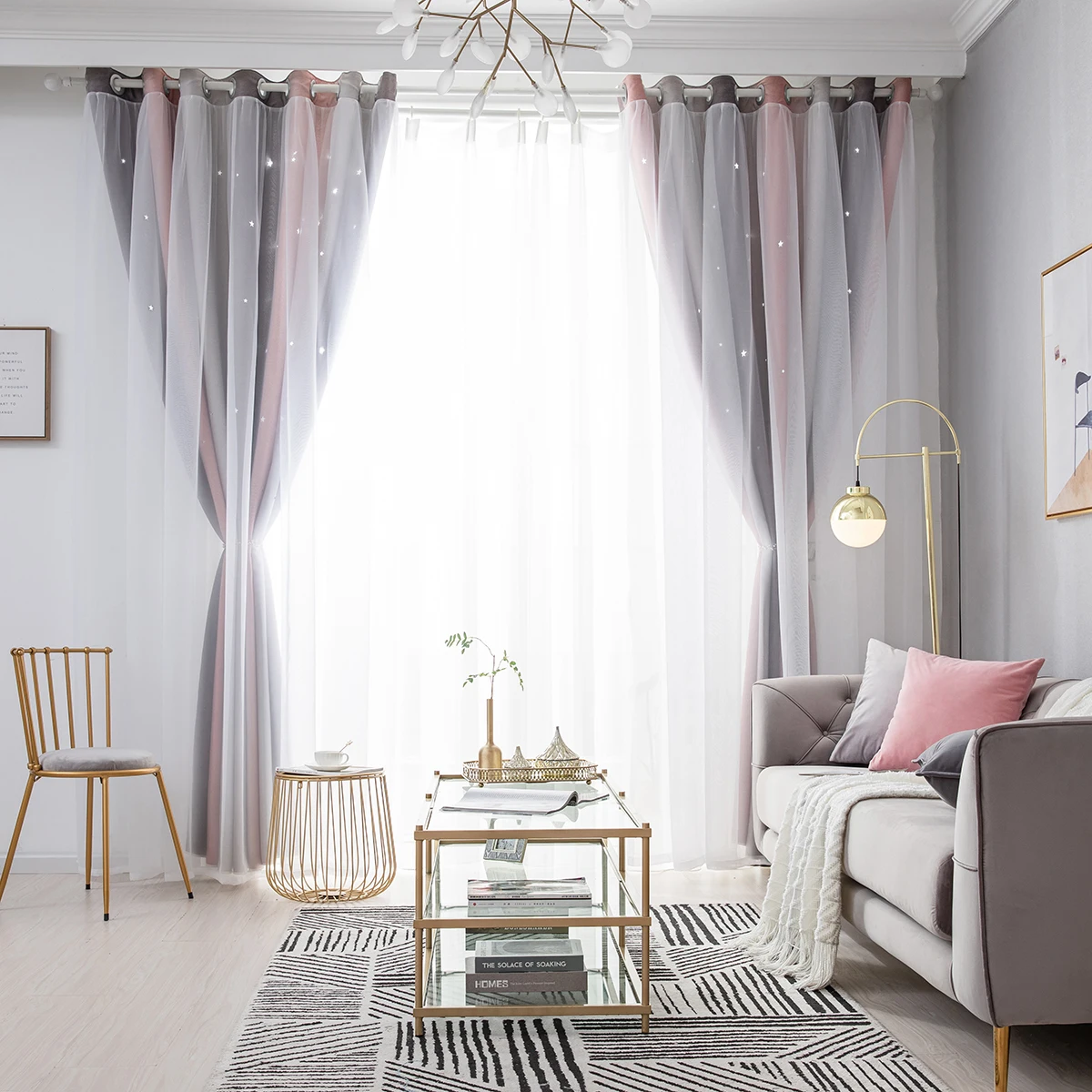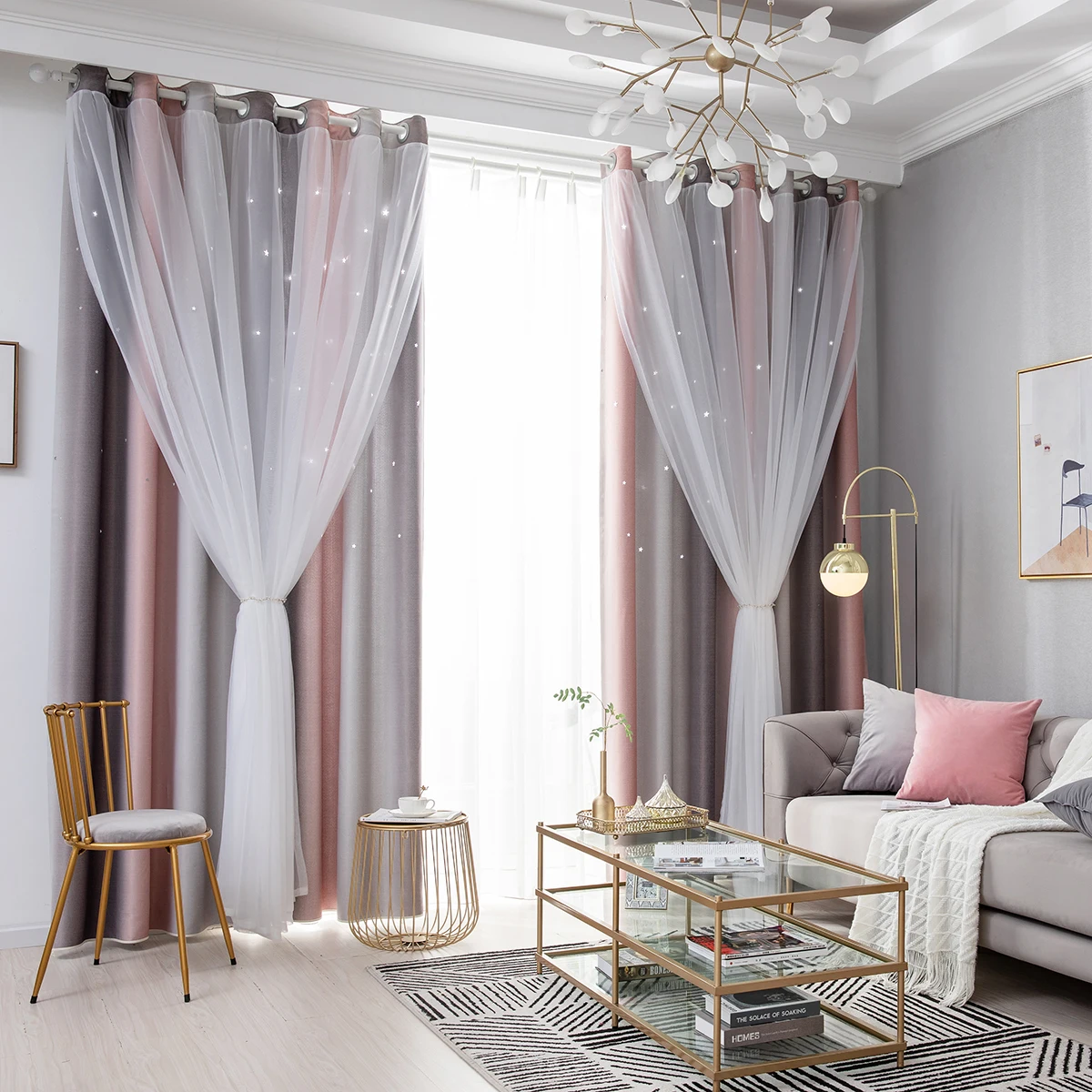 1 панель окнаШторыДвухслойная пряжа, тюль, накладки, выдалбливают звезды, Омбре, занавески, ушкоЗанавеска для гостиной и спальни