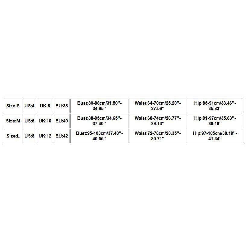 Размер США Великобритания ЕС Бюст Талия Бедра S 4. 8 38 80-88 см/31,50 ''-34,65'' 64-70 см/25,20 ''-27,56'' 85-91 см/33,46 ''-35,83'' М 6 10 40 88-95 см/34,65 ''-37,40'' 68-74 см/26,77 ''-29,13'' 91-97 см/35,83 ''-38,19'' L 8 12 42 95-103 см/37,40 ''-40,55'' 72-78 см/28,35 ''-30,71'' 97-105 см/38,19 ''-41,34''