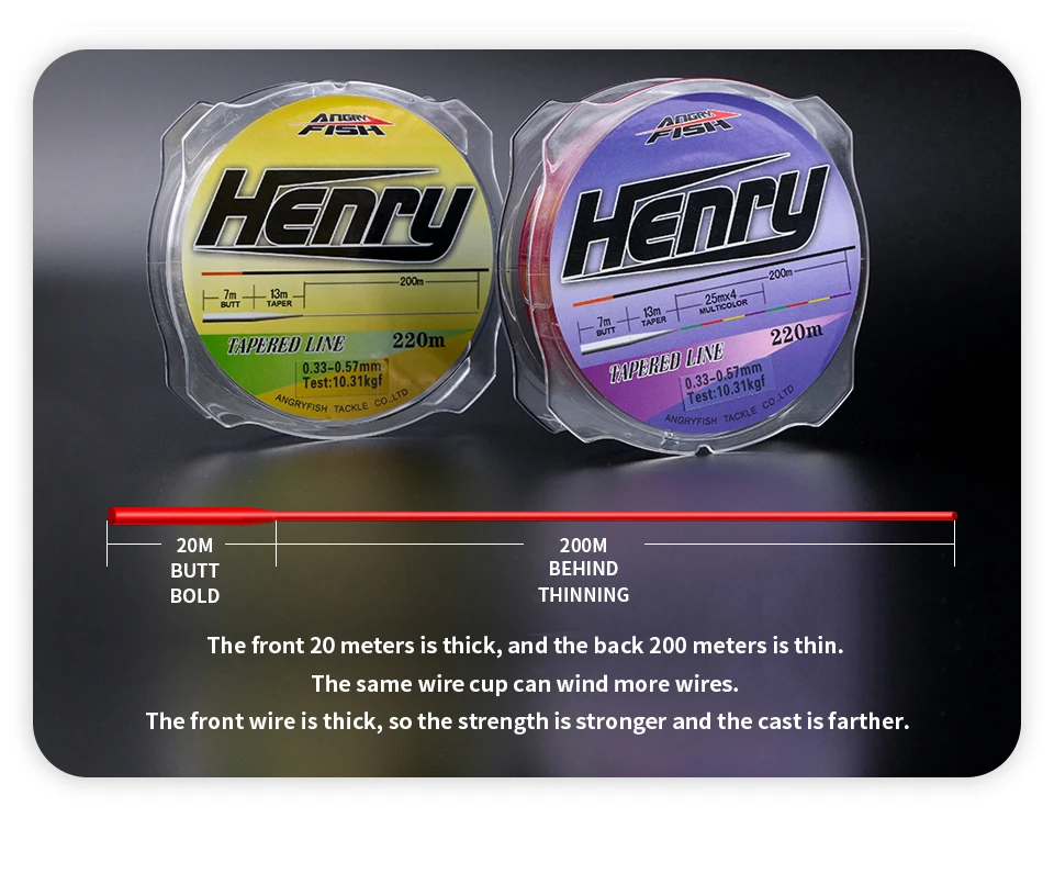 Одна часть лески 20 метров толщиной и одна секция 200 метров тонкой. Та же проволочная чашка может ветрить больше линий. Передняя линия толстая, поэтому прочность сильнее.