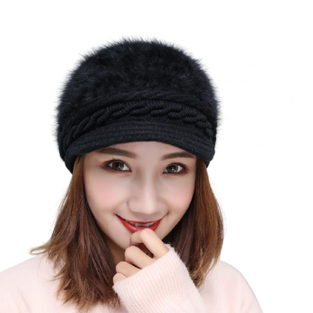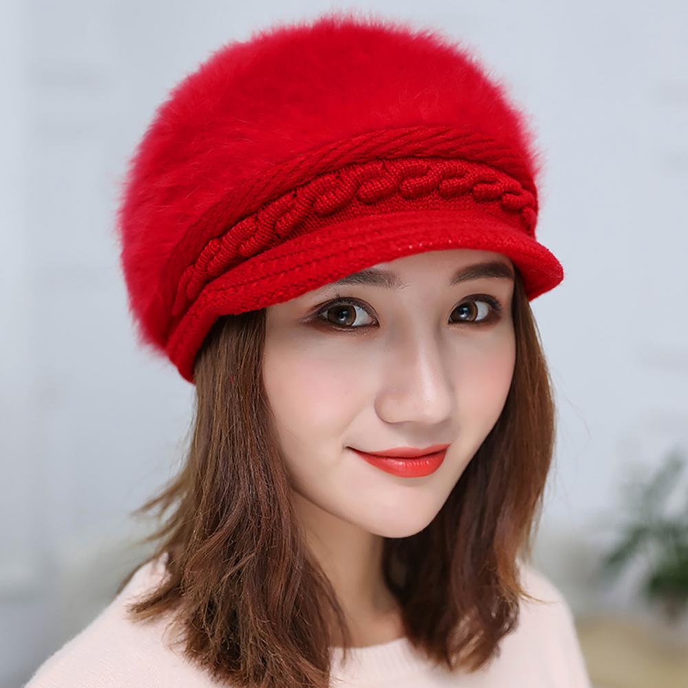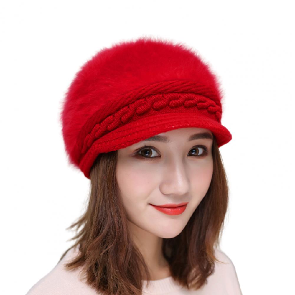 Autumn Winter Outdoor Casual Beanies Knitted Faux Rabbit Fur Warm Beret Cap Hat