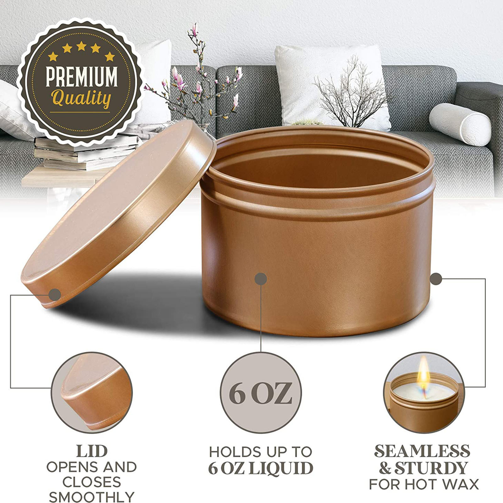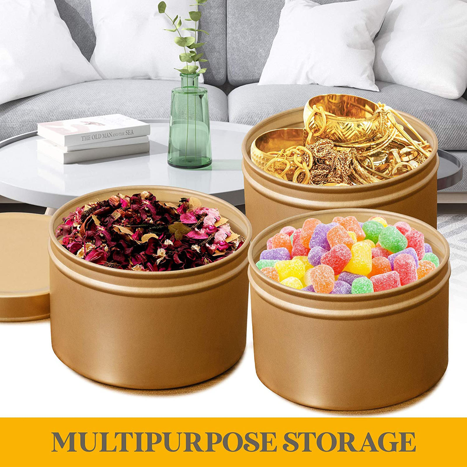 Набор из 12 8 ОЗС пустой лампы в форме свечи банки с крышкой 3-дюймовый бесшовные декоративные из золотистого металла
