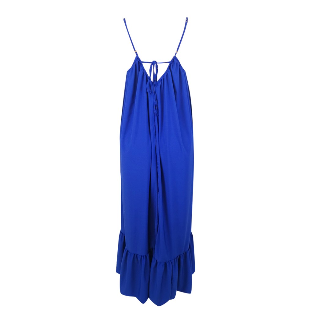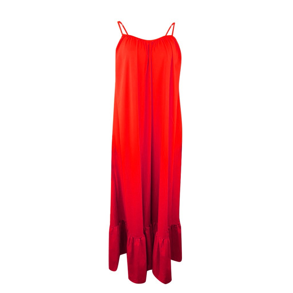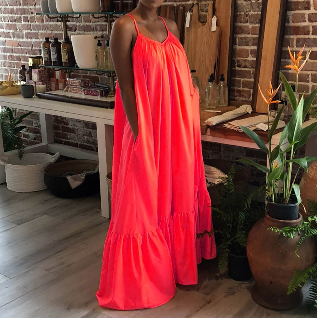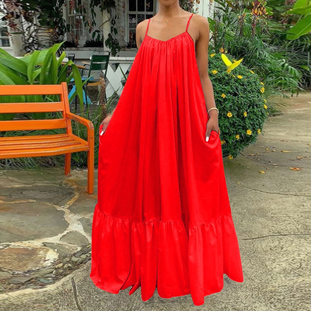 Женское модное повседневное однотонное платье на бретелях с карманами, свободное платье с открытой спиной