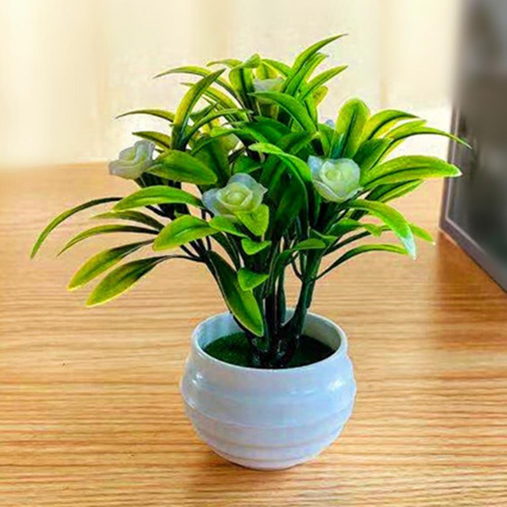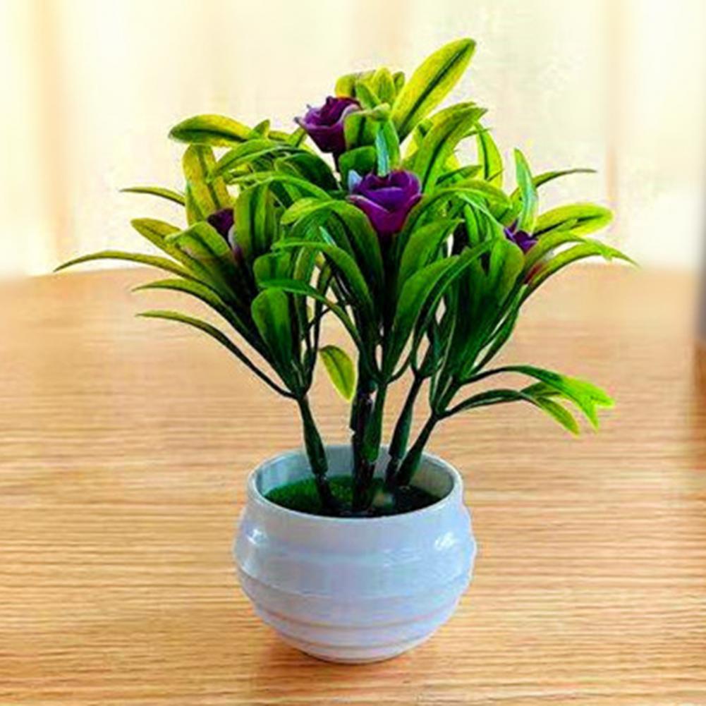 Изготовлено из высококачественного пластика, поддельное растение в горшке безопасно, изысканно и долговечно.