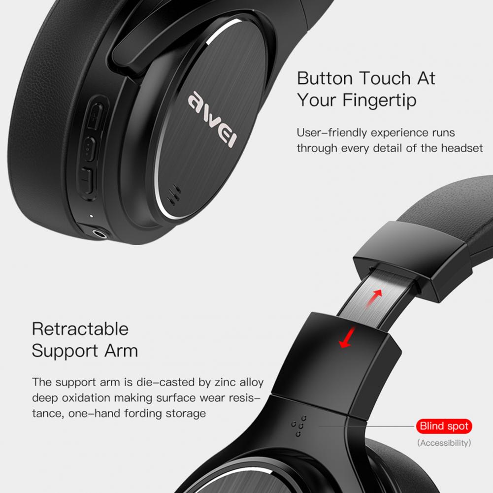 Awei A950BL Беспроводная шумоподавляющая Bluetooth V4.1 ANC головная гарнитура наушники