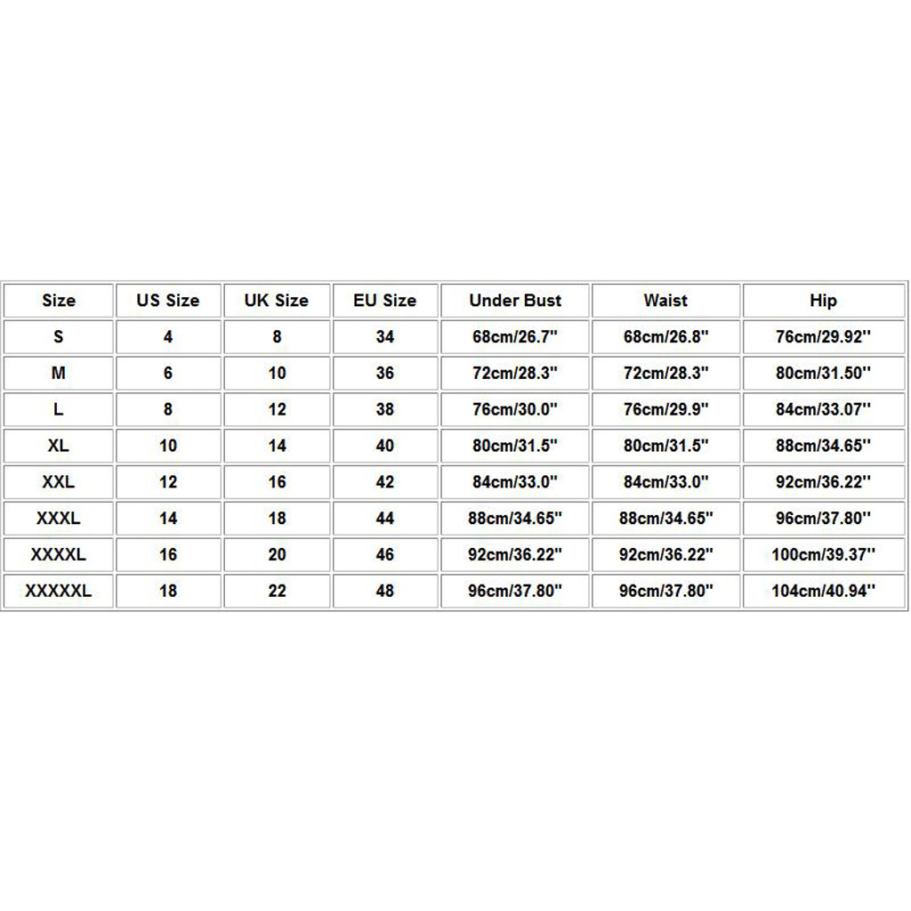 Размер Американский размер Размер Великобритании Европейский размер Под грудью Талия Бедра S 4. 8 34 68 см/26,7" 68 см/26,8" 76 см/29,92'' М 6 10 36 72 см/28,3 дюйма 72 см/28,3 дюйма 80 см/31,50'' L 8 12 38 76 см/30,0" 76 см/29,9" 84 см/33,07'' XL 10 14 40 80 см/31,5" 80 см/31,5" 88 см/34,65'' XXL 12 16 42 84 см/33,0" 84 см/33,0" 92 см/36,22'' XХХL 14 18 44 88 см/34,65" 88 см/34,65" 96 см/37,80'' XXXXL 16 20 46 92 см/36,22" 92 см/36,22" 100 см/39,37'' XXXXXL 18 22 48 96 см/37,80" 96 см/37,80" 104 см/40,94''Не раз заказывала мужу штаны, всё понравилось. Качество хорошее. Цена дешевле, чем у нас, в местных магазинах .Конечно, здесь желательно... Читать отзыв полностью...