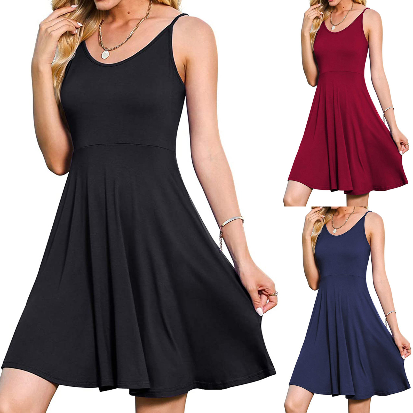 Женское модное повседневное удобное сексуальное однотонное платье с коротким рукавом и u-образным вырезом