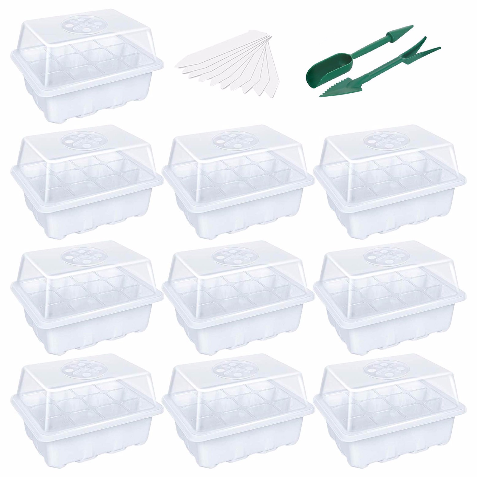 10-упаковка семян лотки для стартера поднос для рассады (12 ячеек в лотке) Регулируемая влажность Стартовый набор растений с куполом и базой теплицы для выращивания семян Запуск