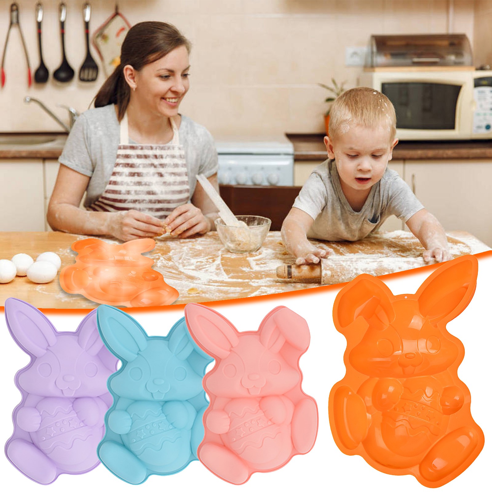 ОписаниеСиликоновые формы для выпечки Банни, пасхальные формы для торта, Мультяшные Банни, инструменты для выпечки DIY