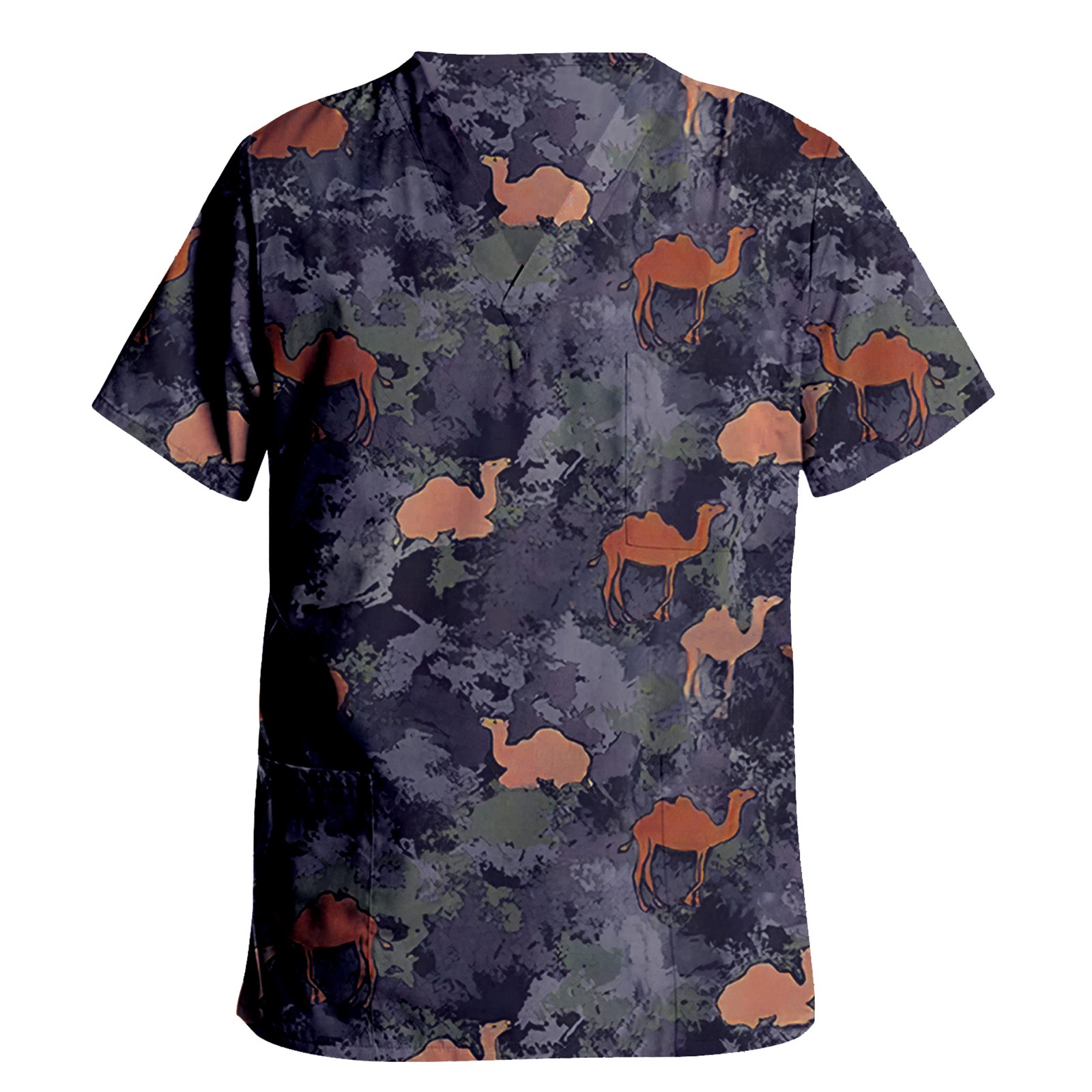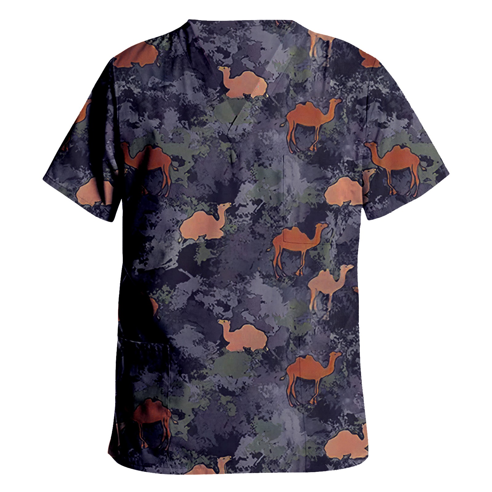 Рабочая форма для медсестры, топы с v-образным вырезом, камуфляжный принт с животными, короткий рукав, с карманом, топы для женщин, Mukoti Yunifomu