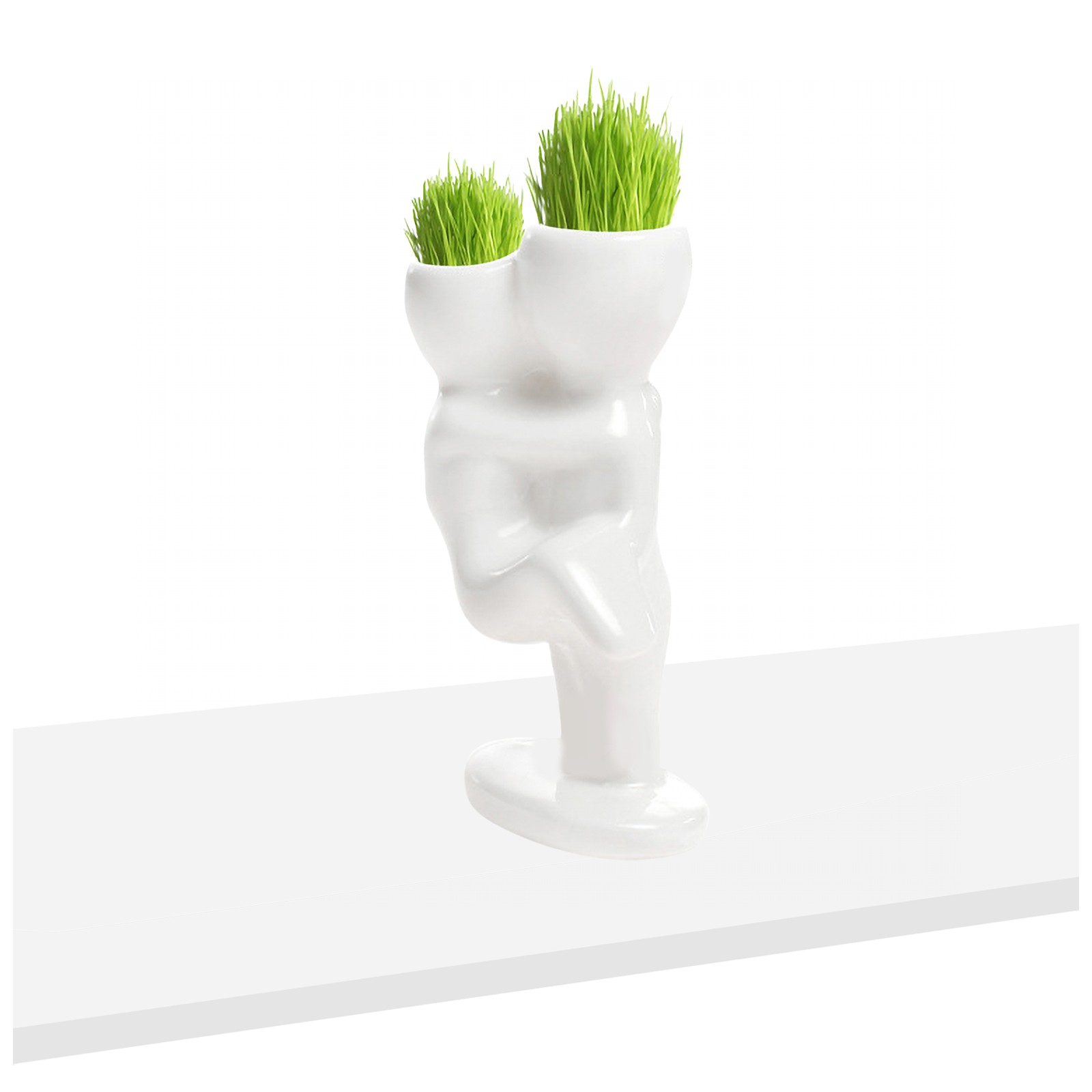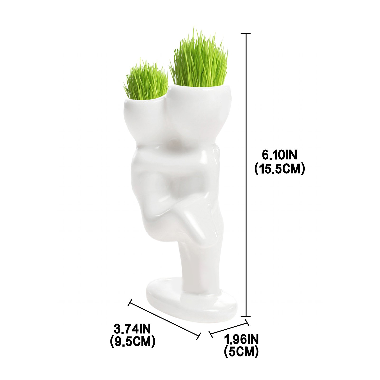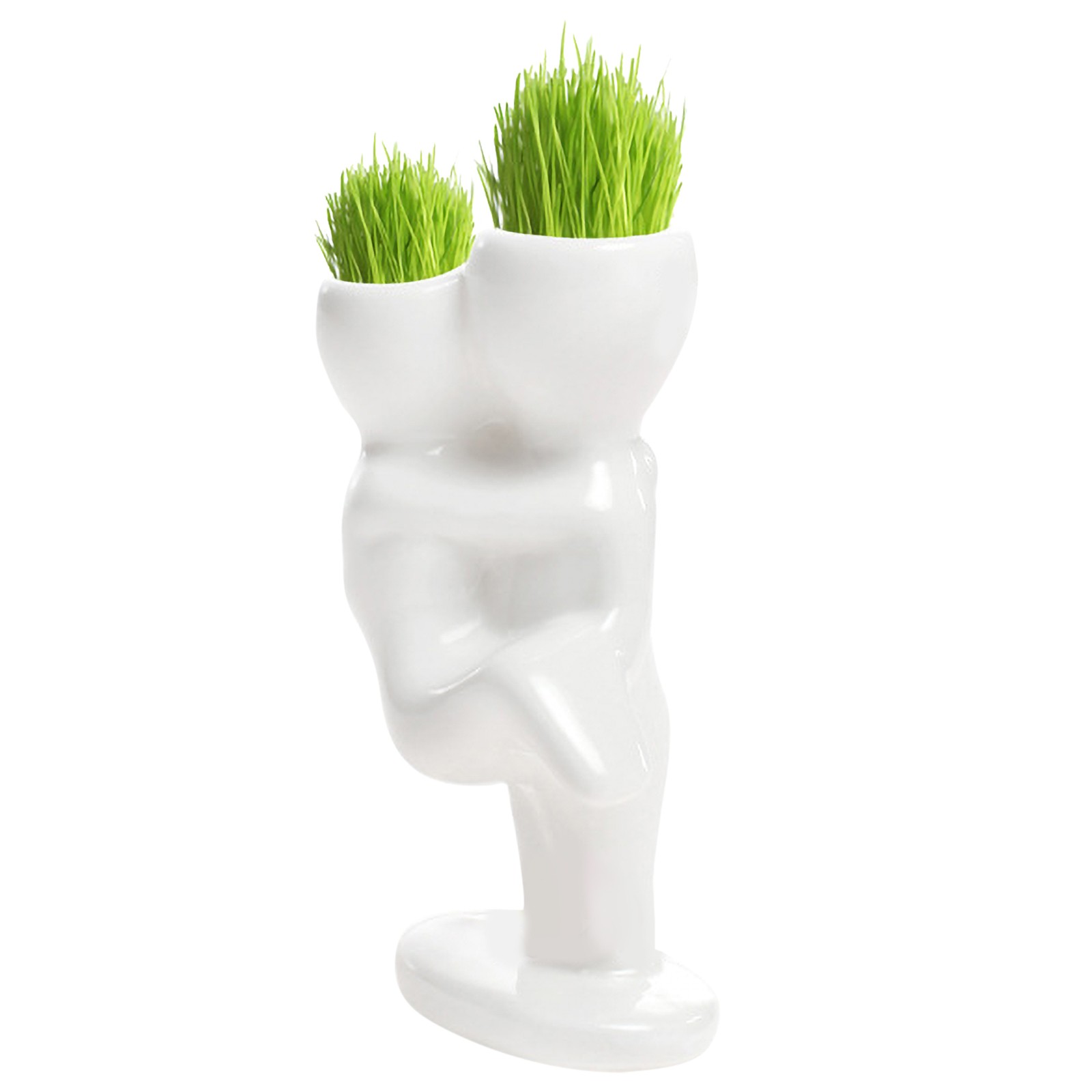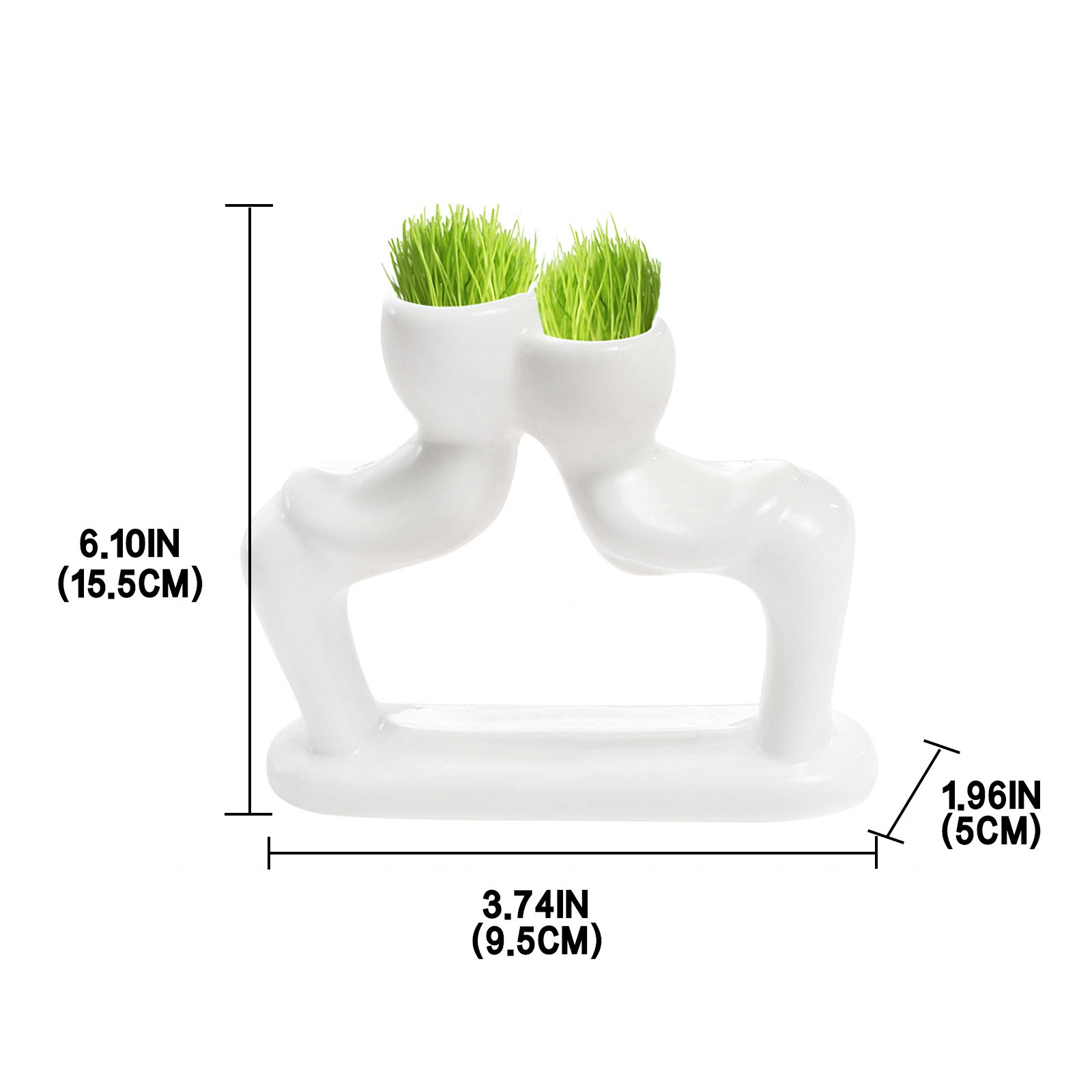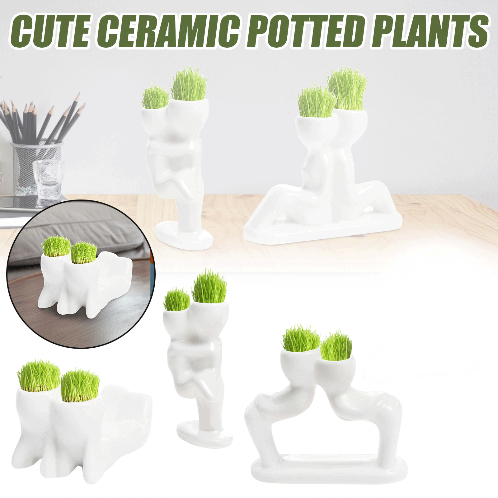 Мини бонсай голова трава волос белый керамический завод сад, кукла на дерево горшок с травой