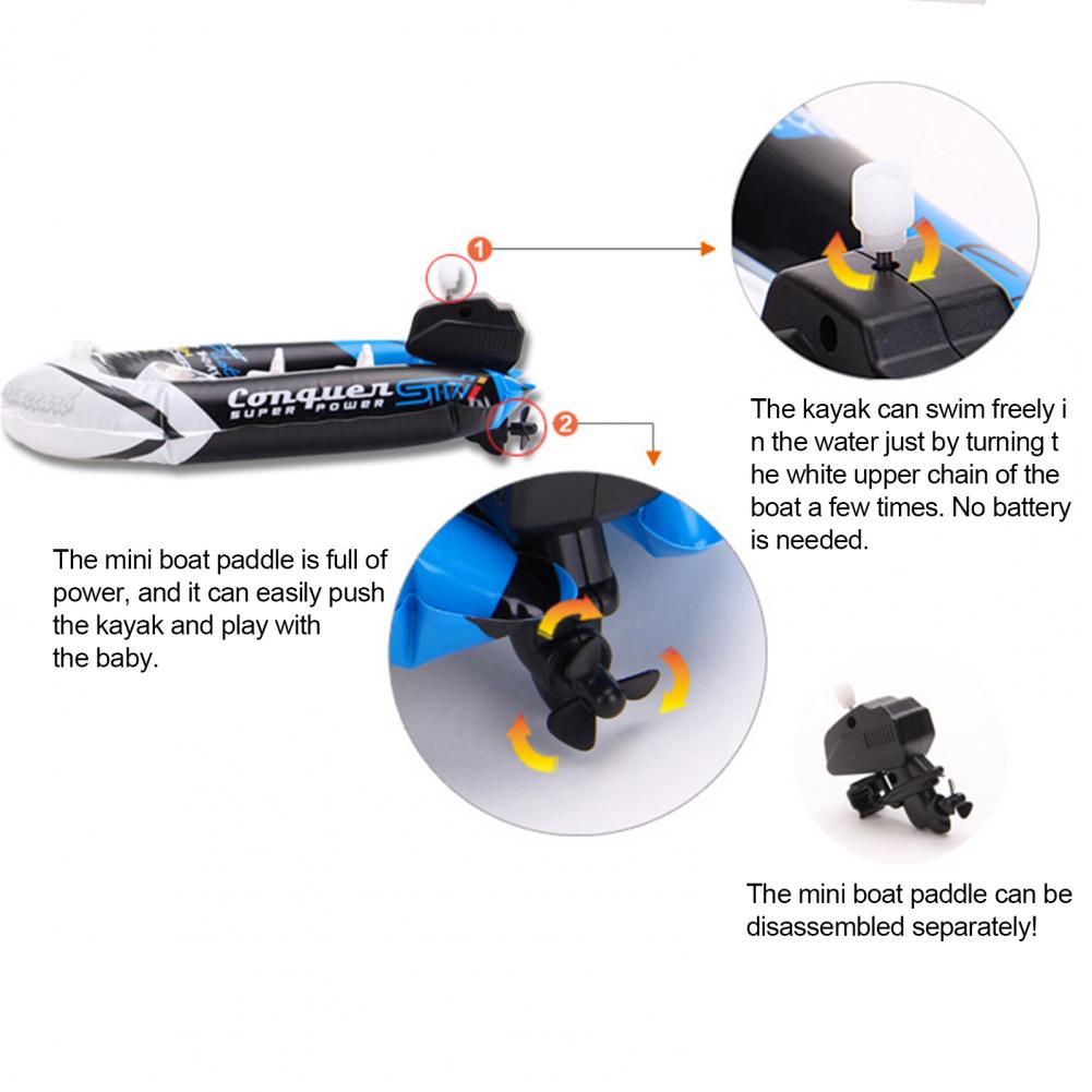 Без батареек ребенку просто нужно повернуть белую цепь, и каяк может плавать в воде.