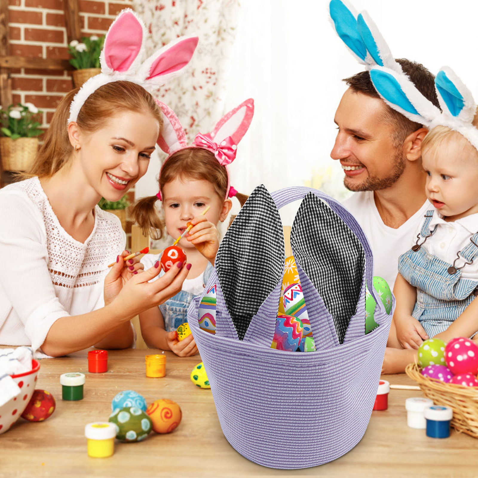Изготовлен из холста, безопасен для хранения игрушек и продуктов питания, прочный и экологически чистый. Ручка для переноски и легкая функция для легкой укладки или транспортировки из одного места в другое. Прелестная Пасхальная сумка подходит для подростков и детей, чтобы носить яйца, конфеты и подарки во время Пасхи, вечерние, фестиваль.Спецификация: