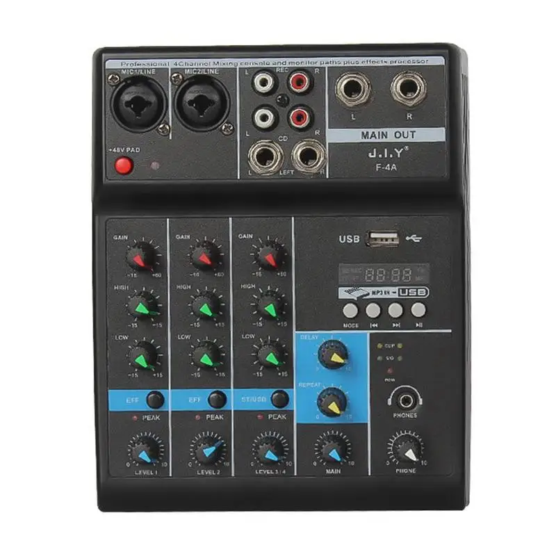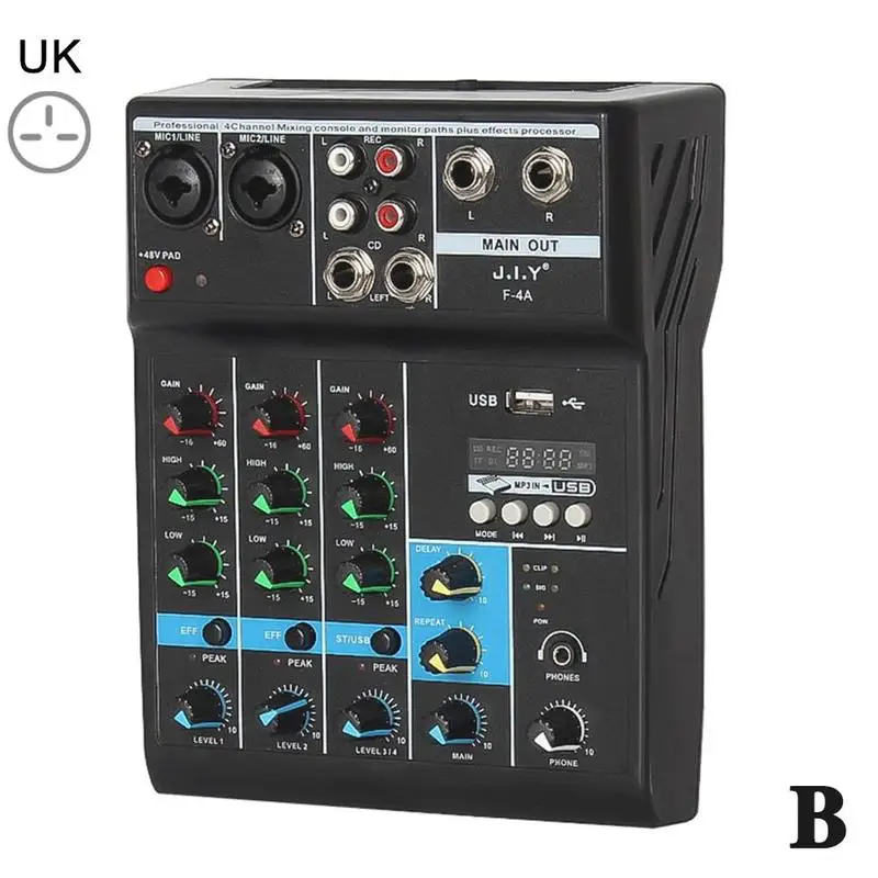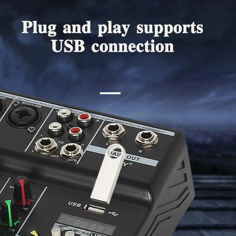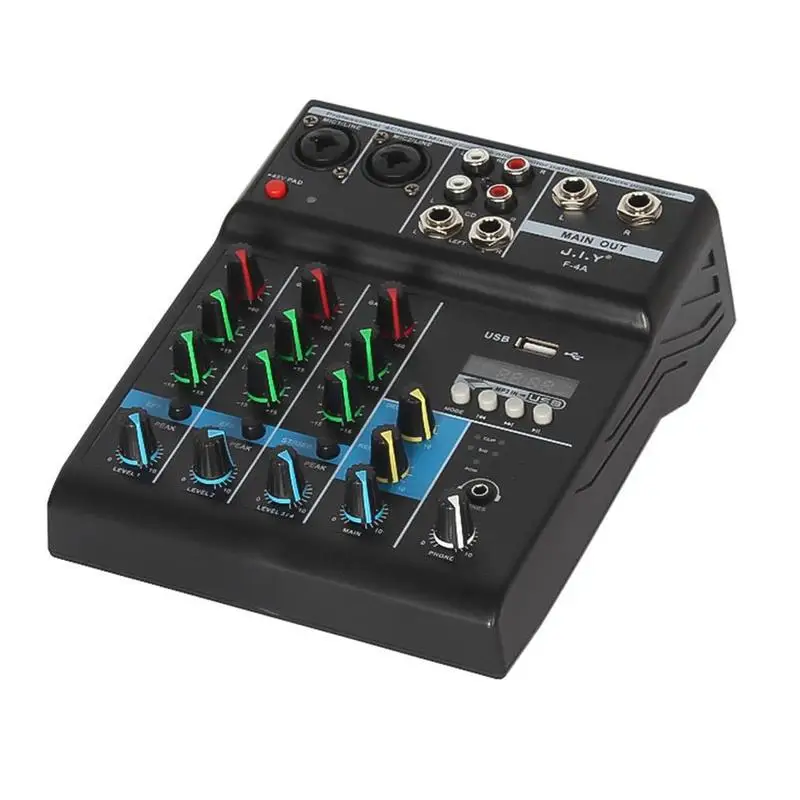 -Миксер оснащен встроенным фантомным источником питания 48 В + для прямого питания конденсаторных микрофонов.
