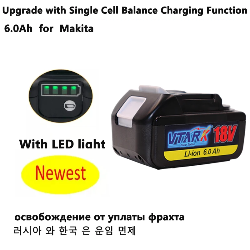 Аккумуляторная батарея BL1860, последнее обновление, 18 в, 6000-9000 мАч, литий-ионная батарея для Makita, 18 В батарея BL1840, BL1850, BL1830, BL1860B, LXT400