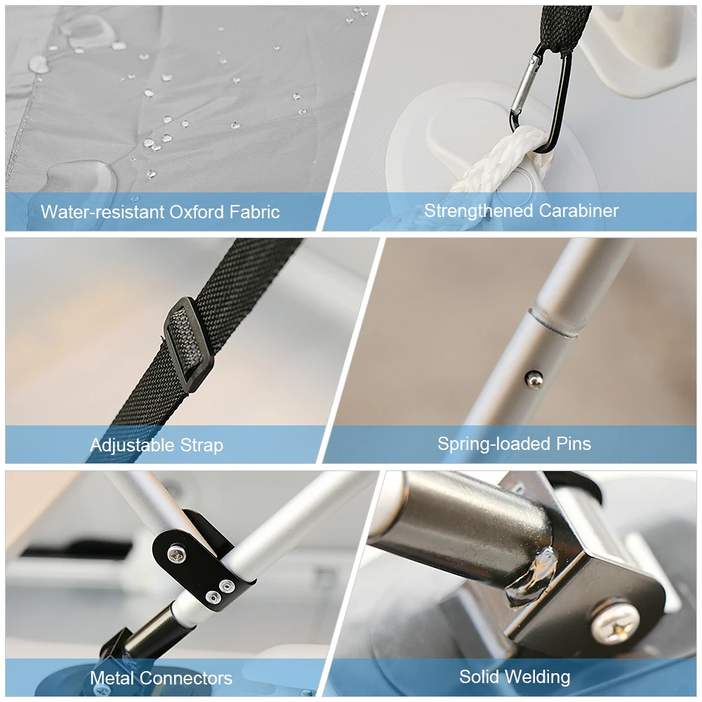 Изготовлен из ткани oxford 210D с серебристым покрытием PU, водостойкий и с защитой от ультрафиолета.