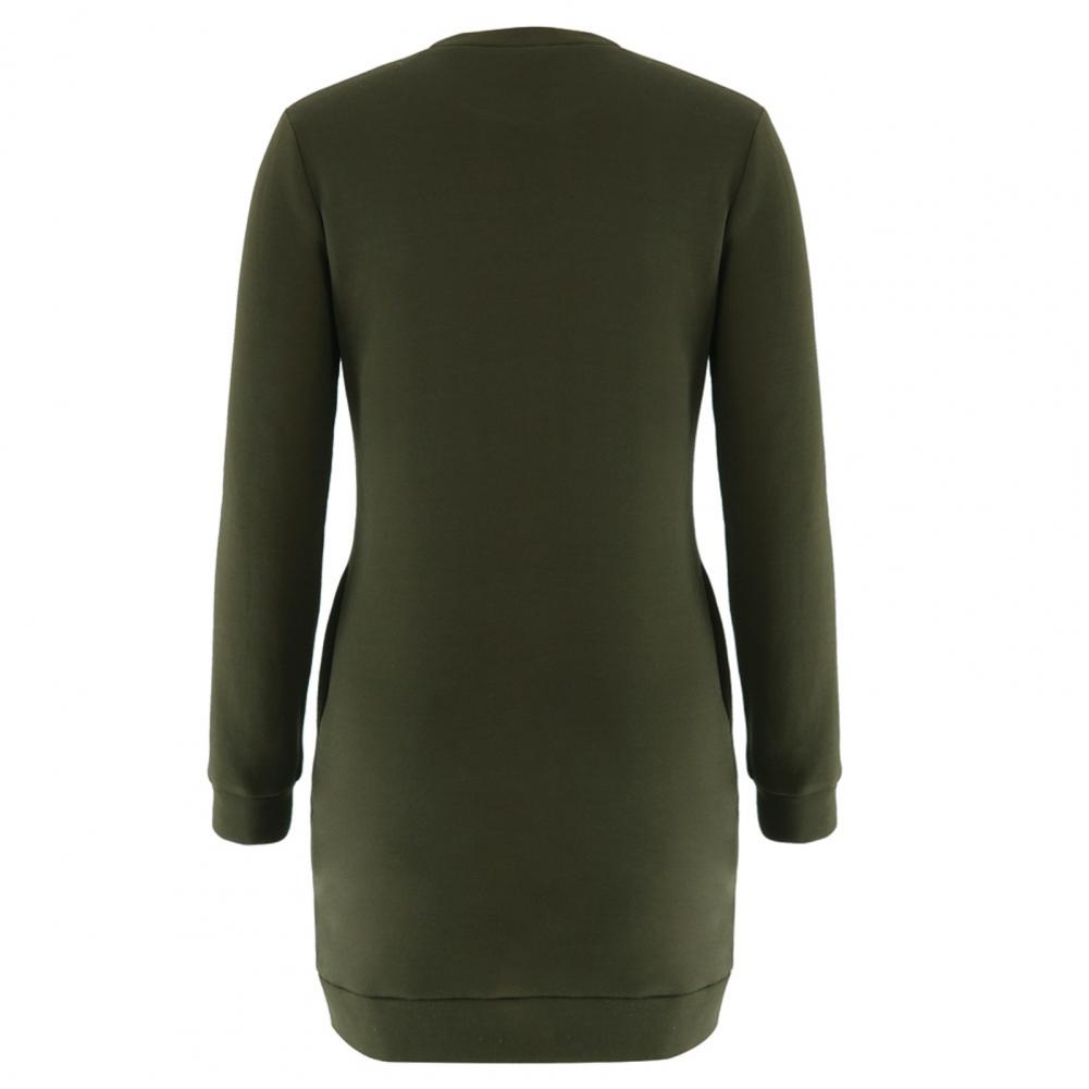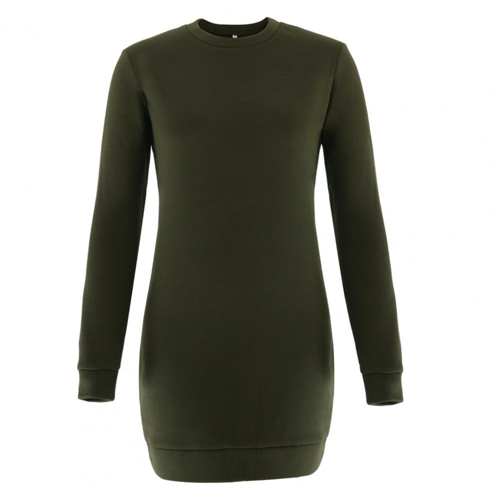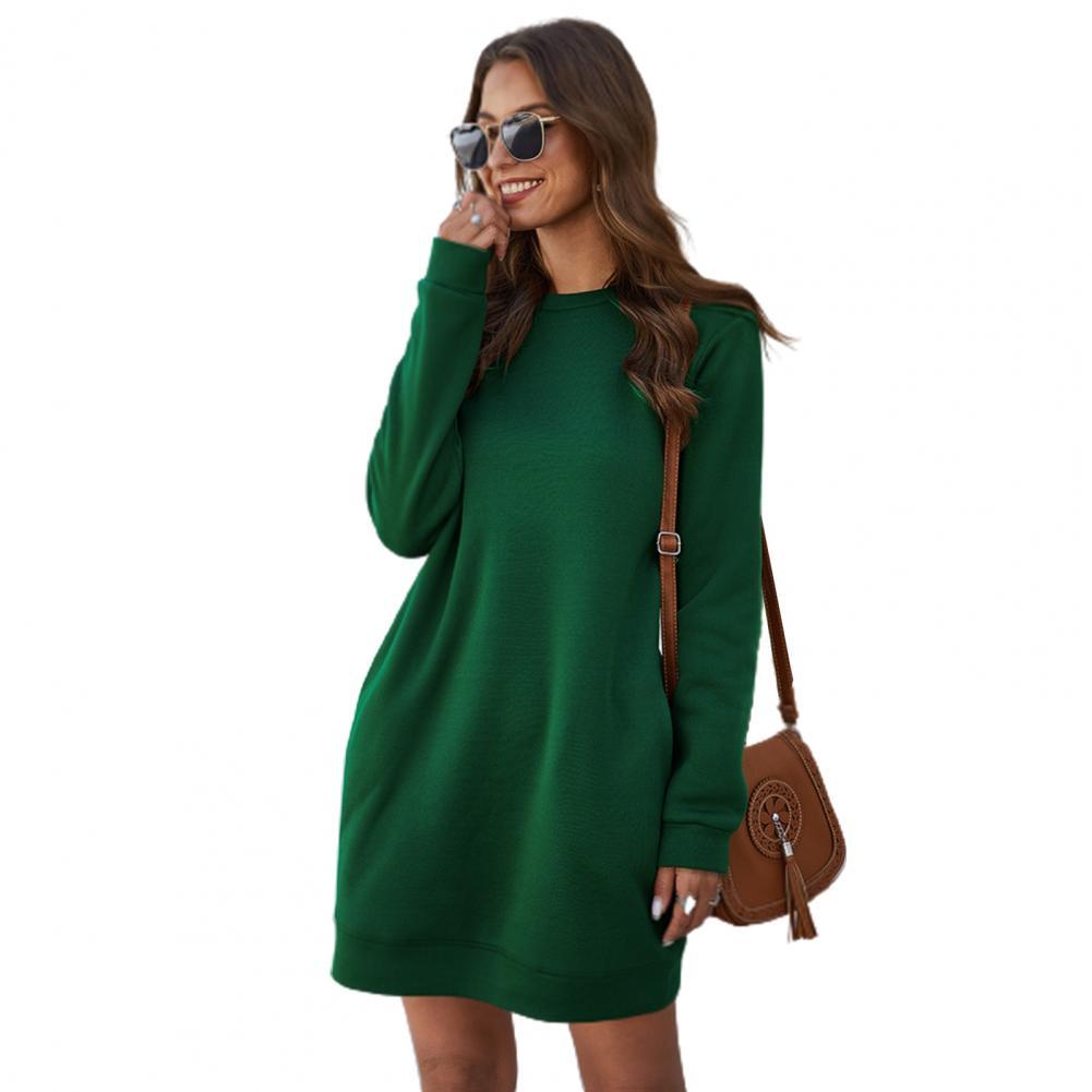 Осенне-зимнее женское однотонное свободное мини-платье с длинными рукавами и карманами