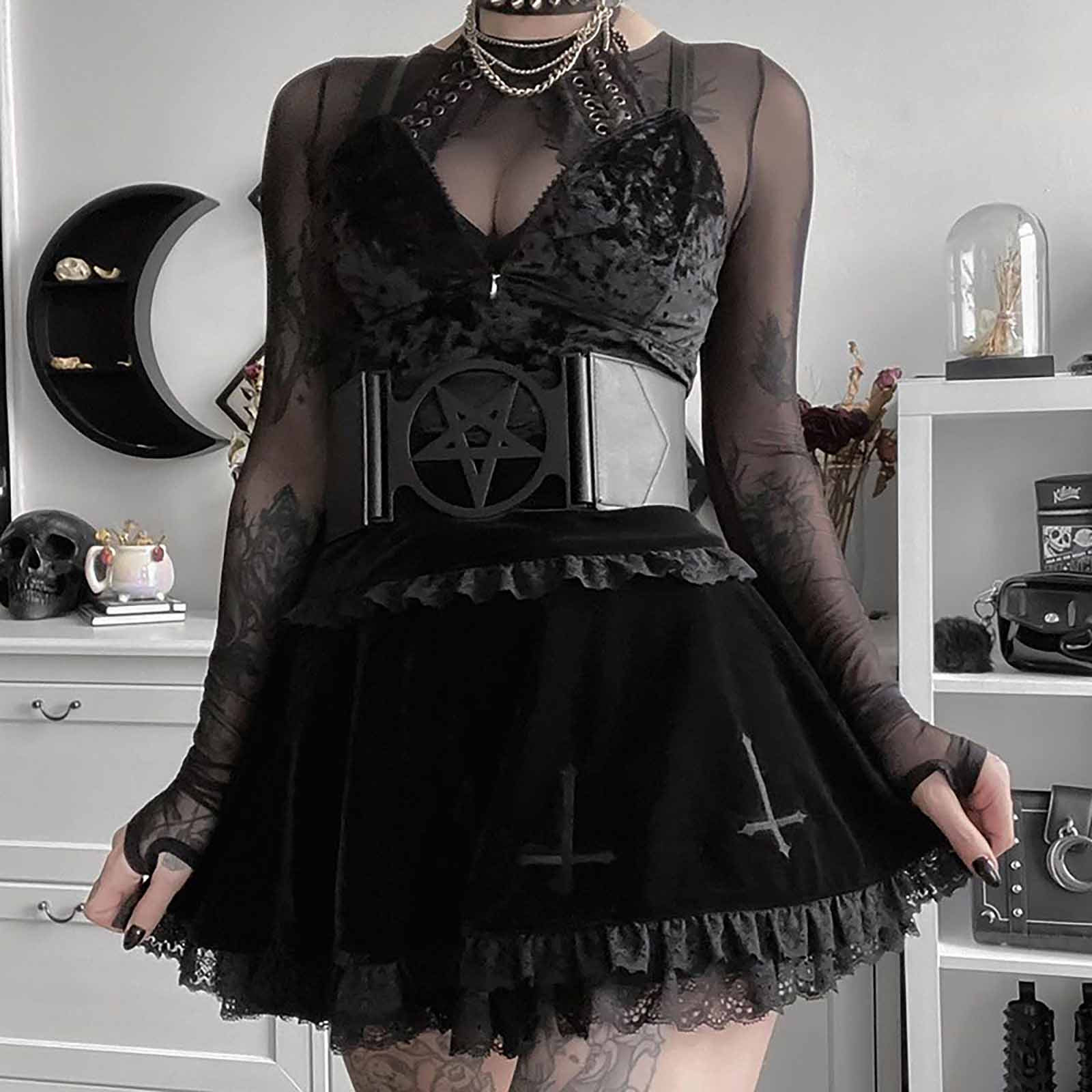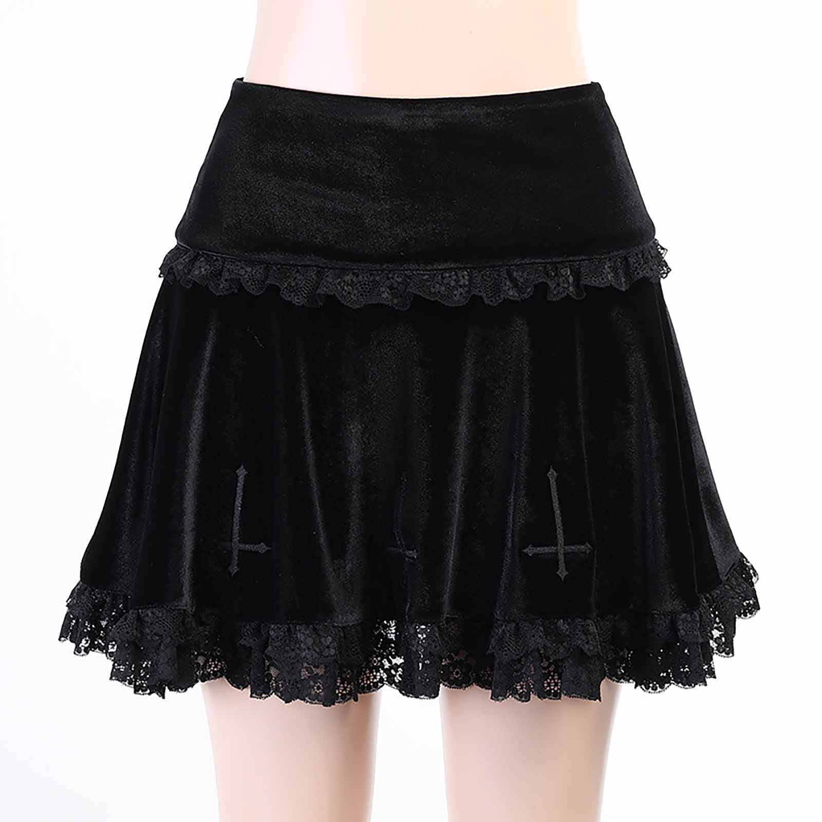 Женское летнее платье, юбка с вышивкой из замши, Черная кружевная Лоскутная панк-Юбка для женщин, повседневная сексуальная одежда для женщин
