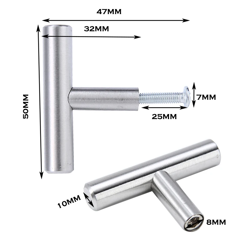 Каждая ручка полая, чтобы обеспечить правильный баланс веса для любых ящиков и дверей шкафа